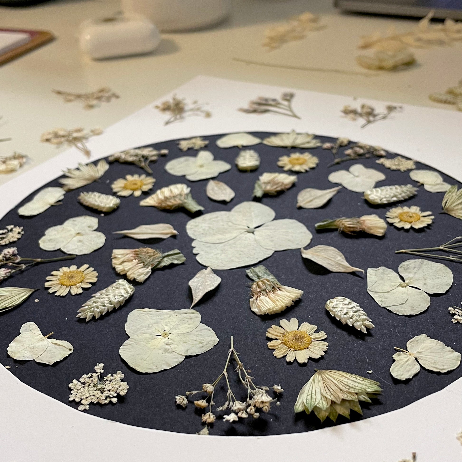Flowers have been locally grown with lots of love and preserved to hold their colour as long as possible. Please remember that the flowers will develop more character over time and eventually fade. To hold the colour of your artwork longer, keep your artwork out of direct sunlight and prevent any moisture from getting to them within the frame. Sunny living spaces and bathrooms may change the way your flowers age over time.