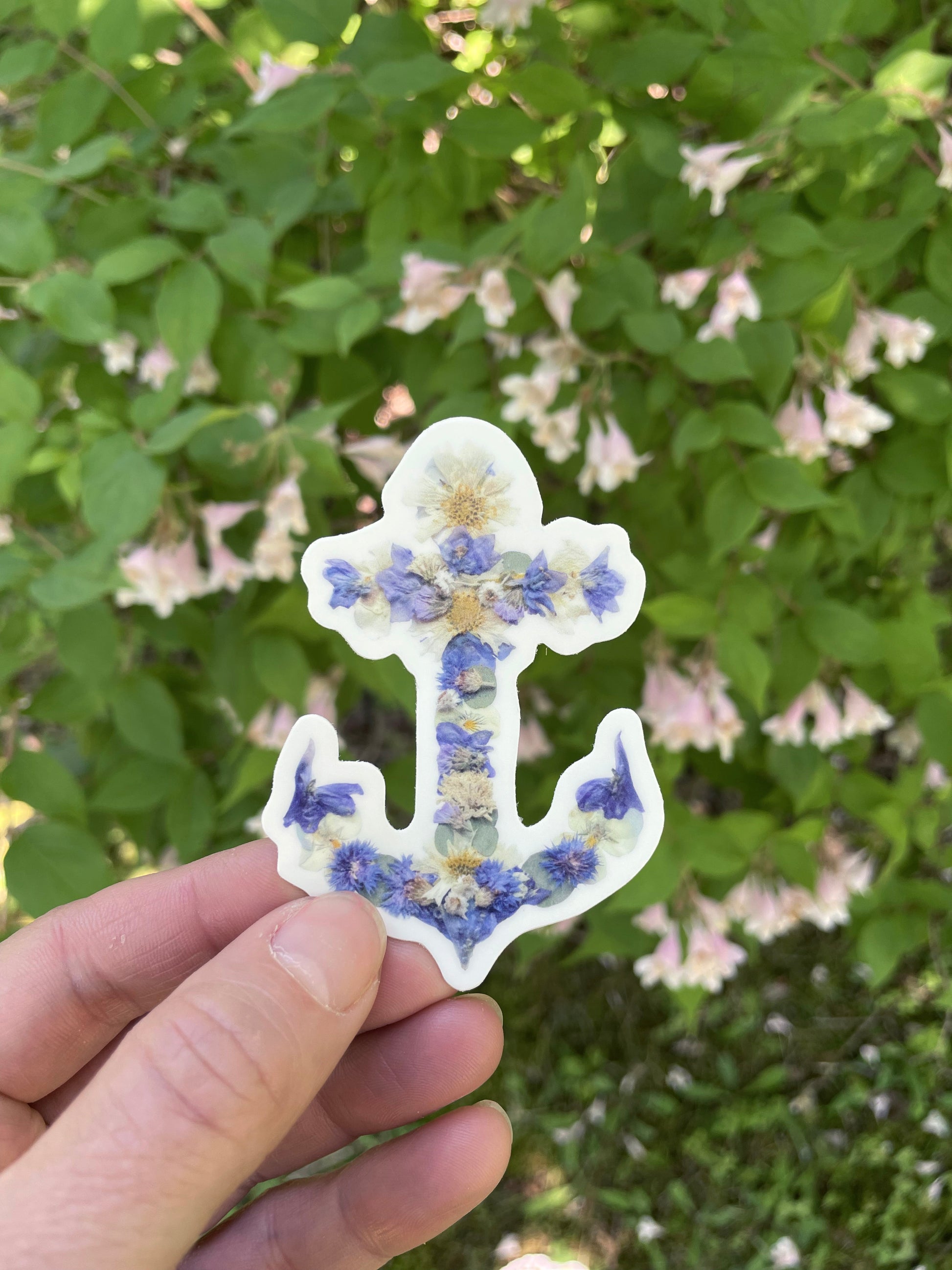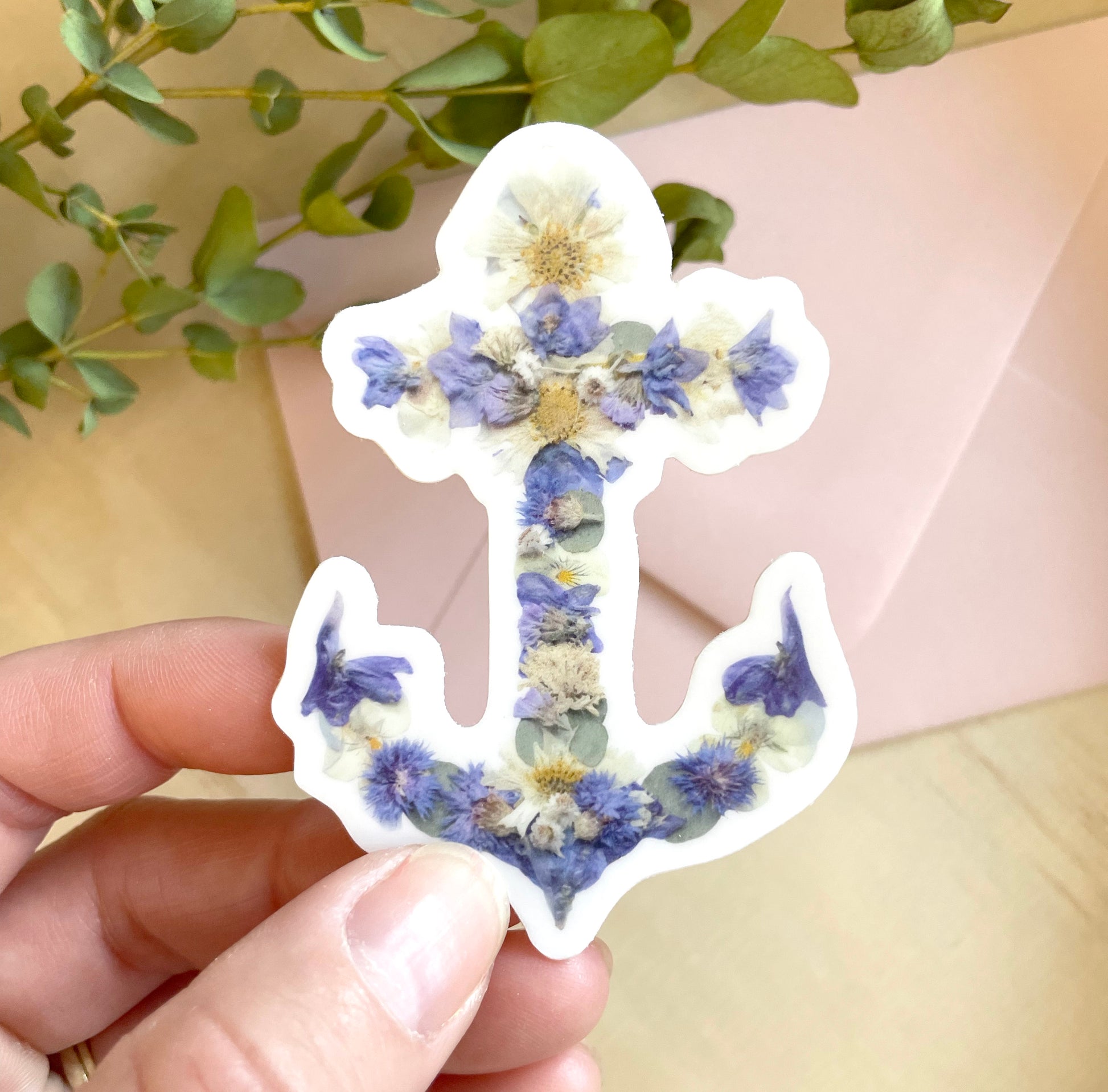Anchor Pressed Blue and White Flowers, Sticker 3"