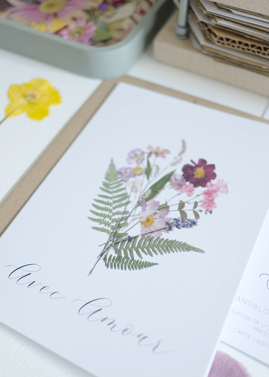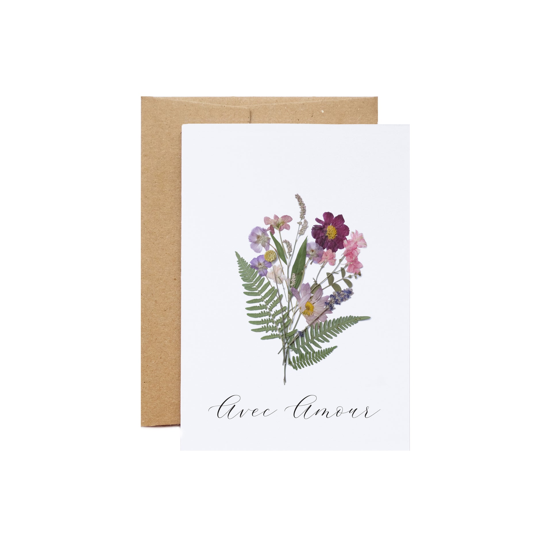 Avec Amour, Pressed Floral Bouquet, Large Card French