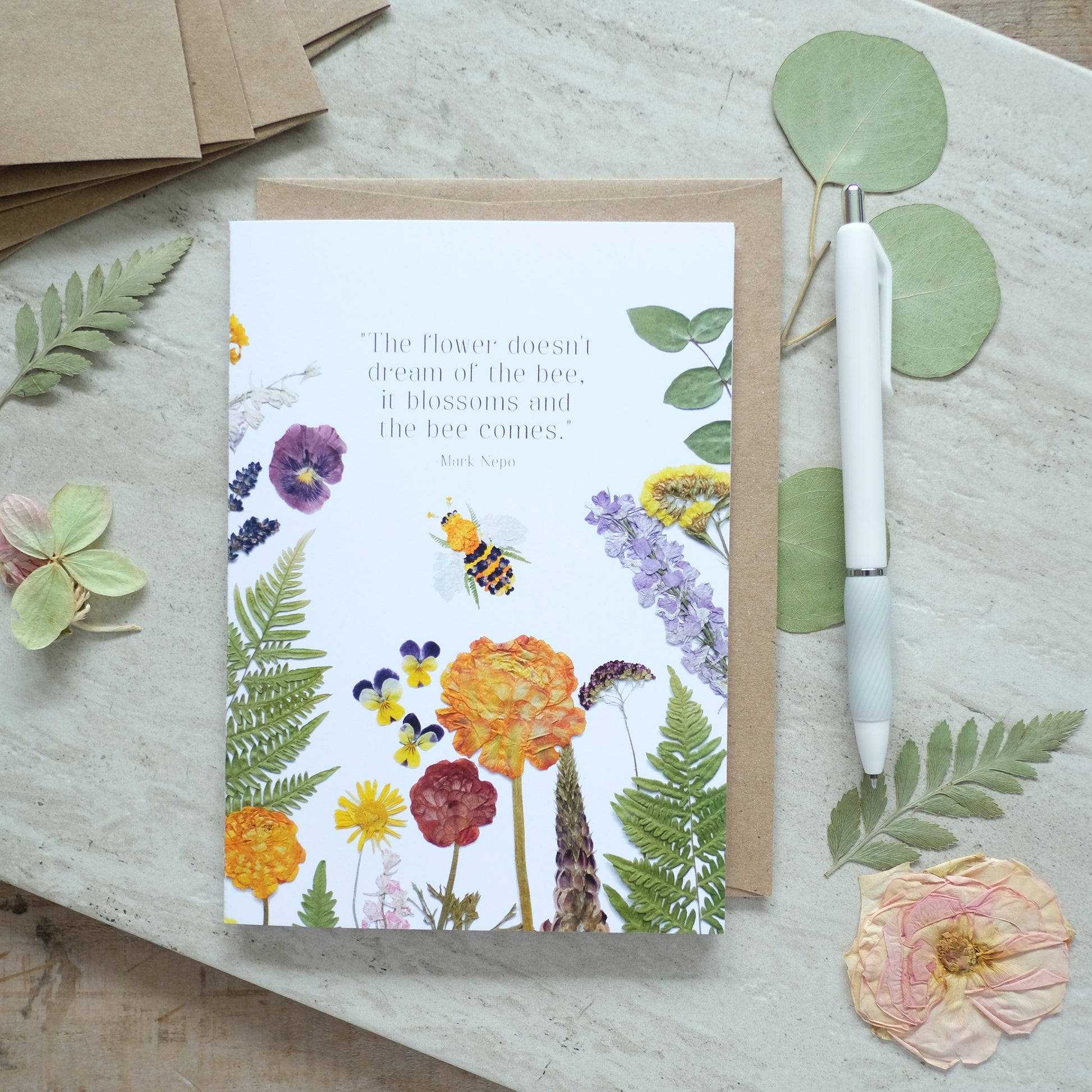 Please note: All cards and prints are professionally photographed and digitally reproduced from our original artwork to maintain their natural and organic appeal. While they don't feature actual flowers, their lifelike quality still captures the natural beauty of the original flower art.