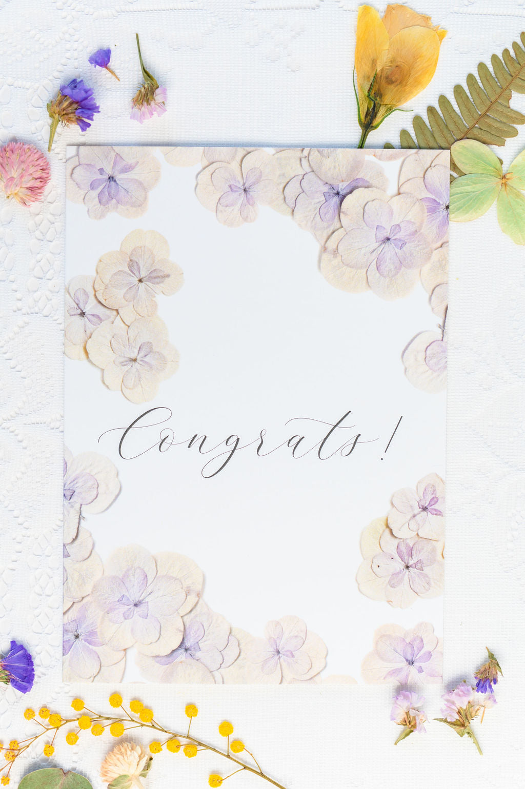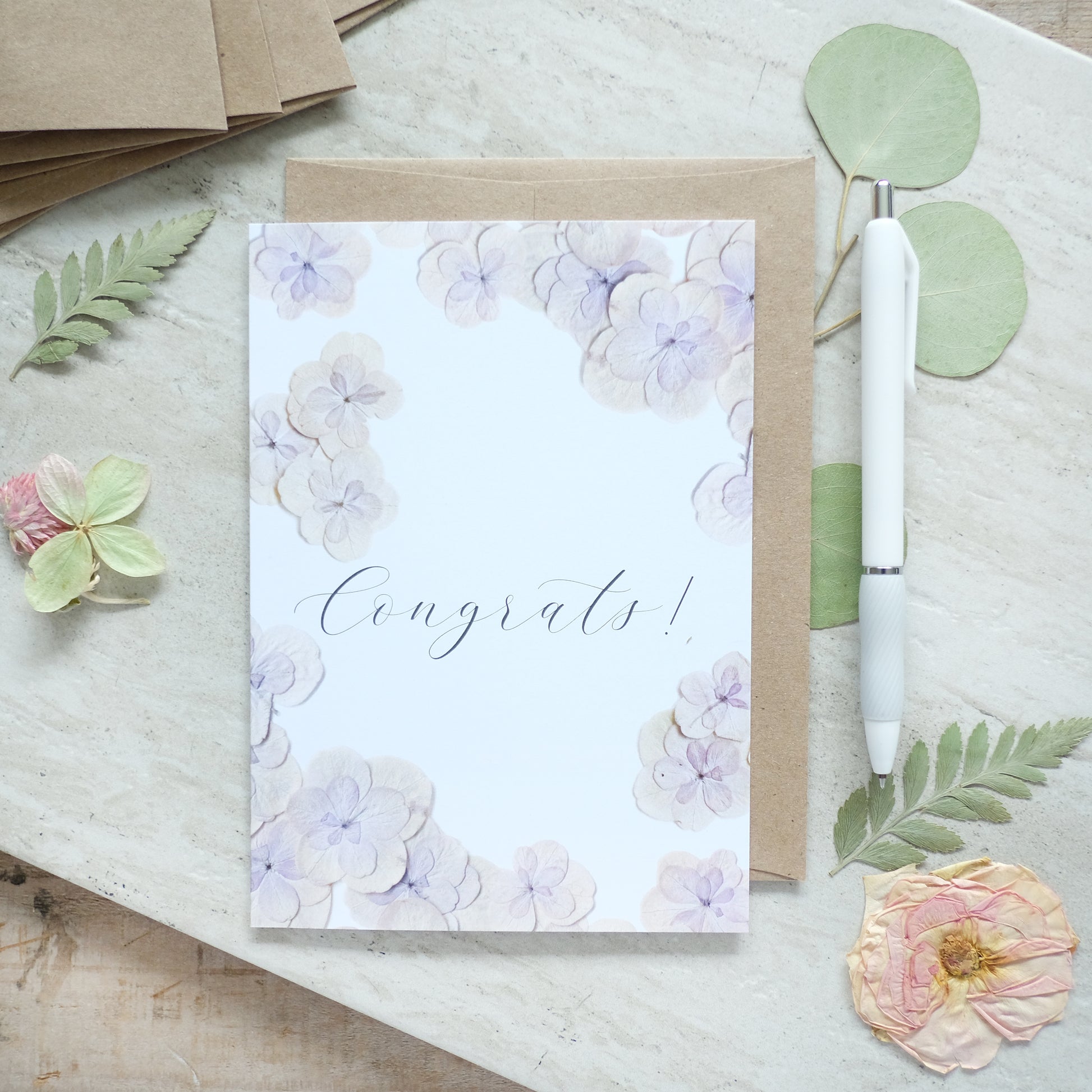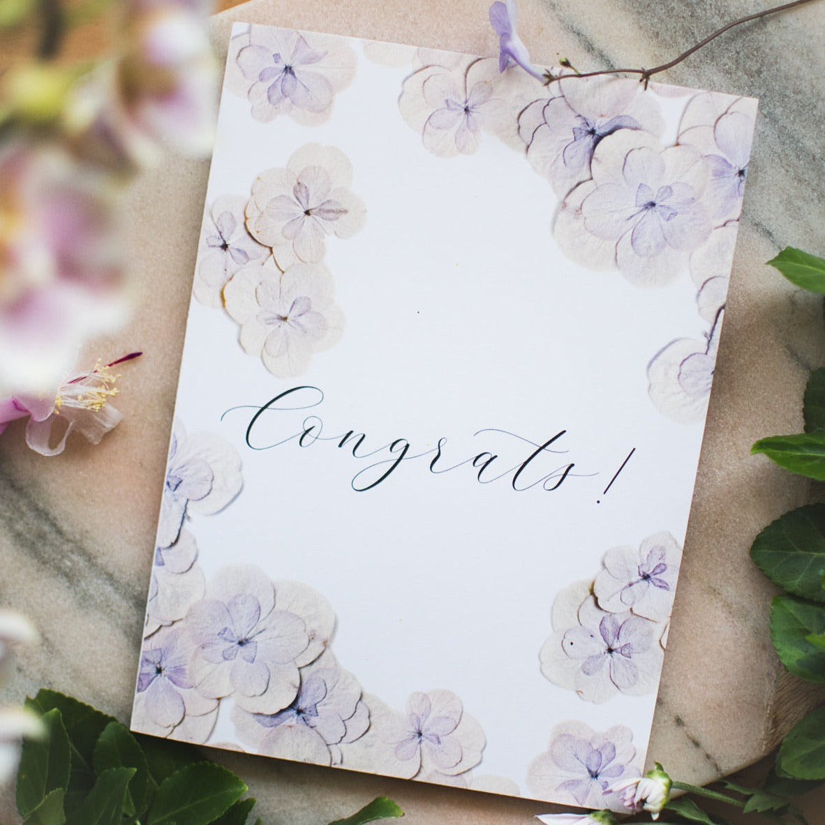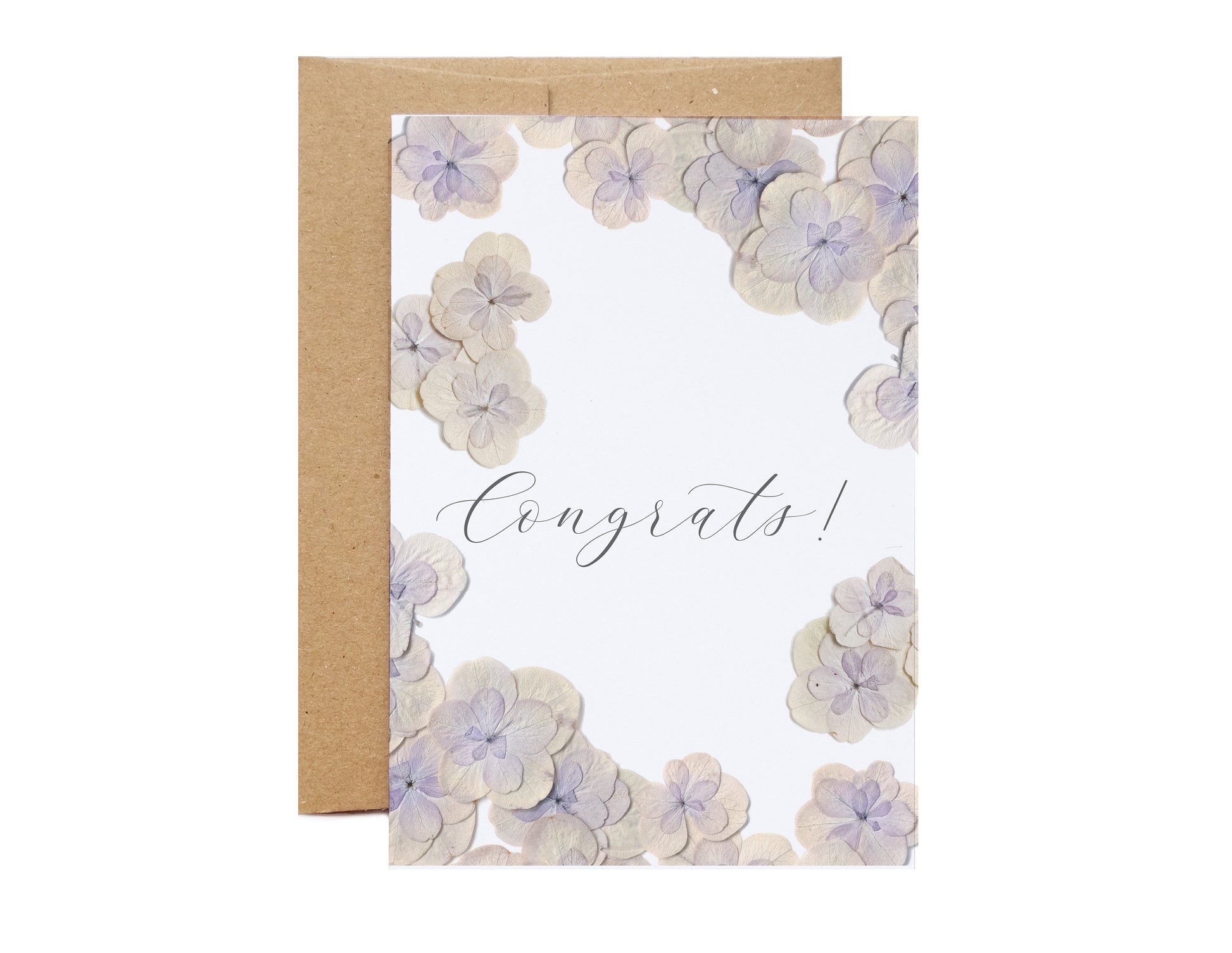Congrats, Purple Hydrangea, Digitally Printed, Pressed Flower Design