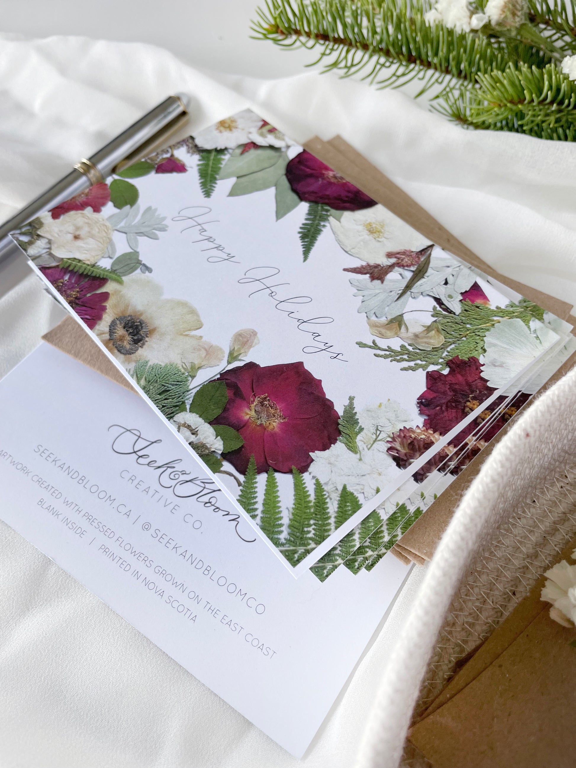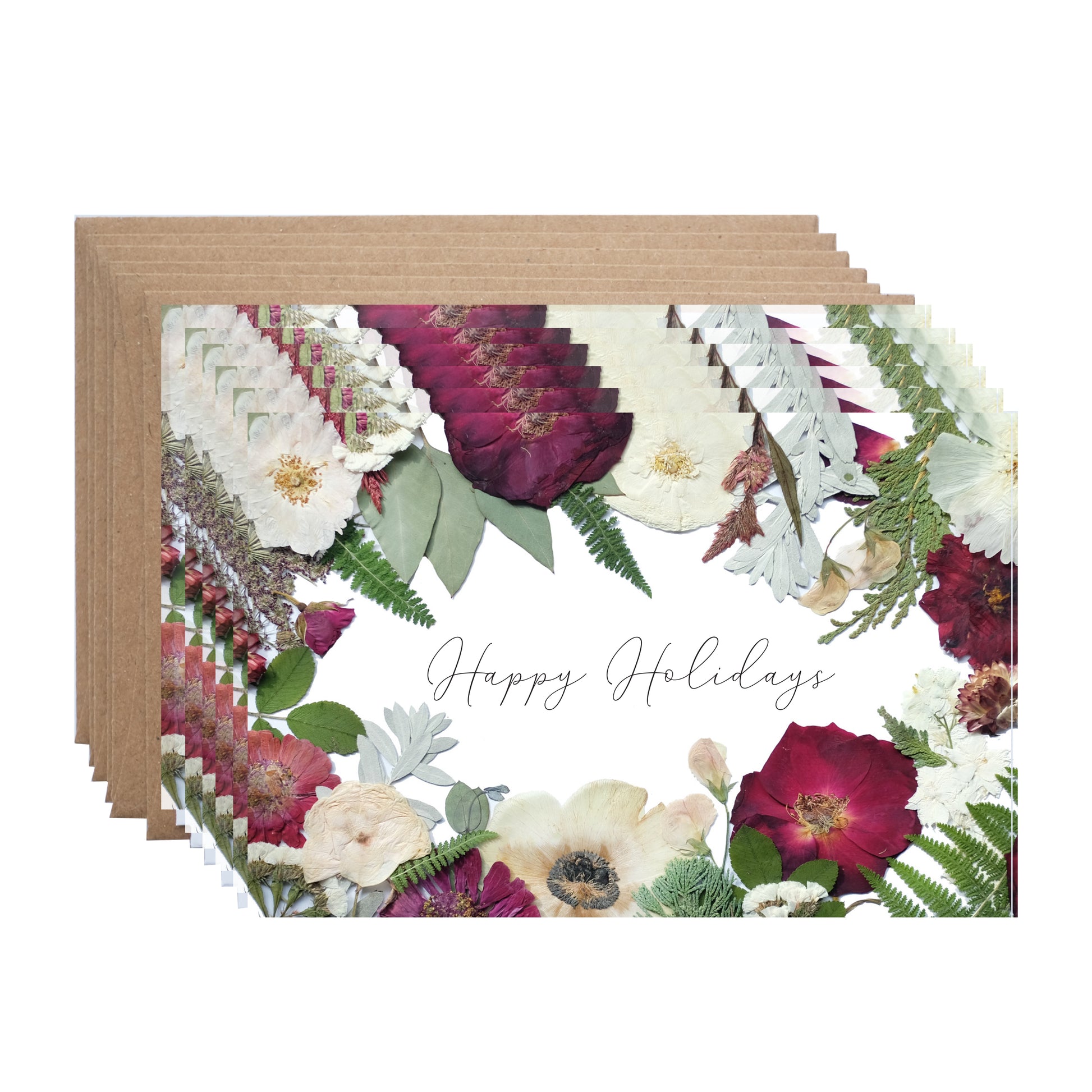 Pressed Flowers, Happy Holidays, Seasonal Note Card Set