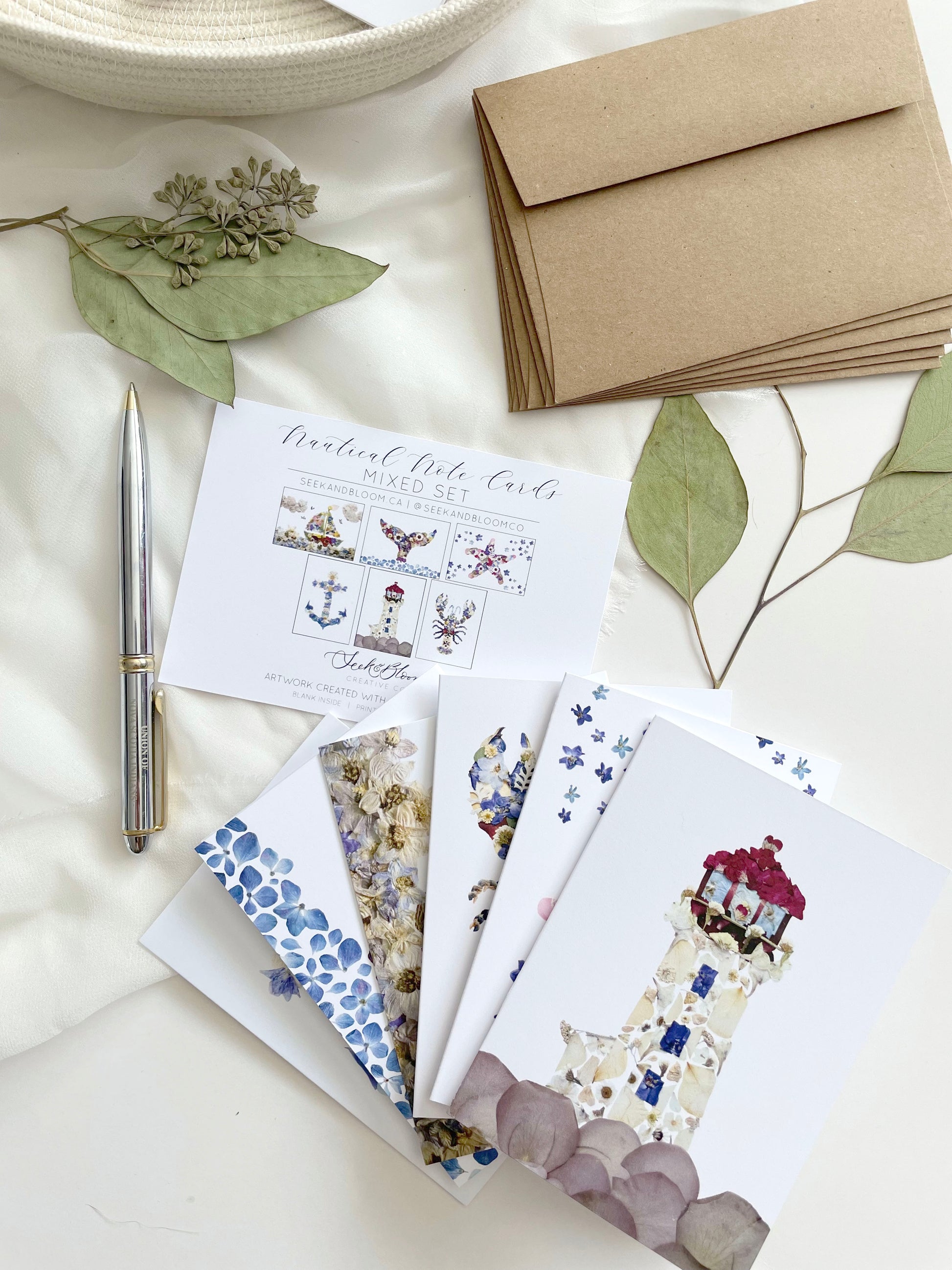 Mixed Pack, Nautical Pressed Flower, Note Card Set