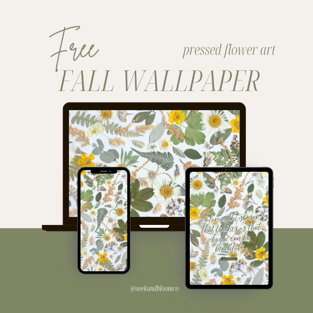 Enjoy a fall-inspired wallpaper set made with pressed greenery and flowers!