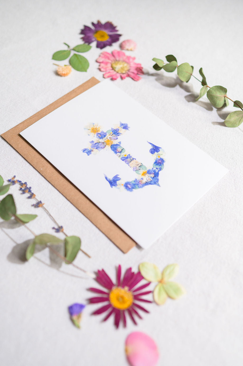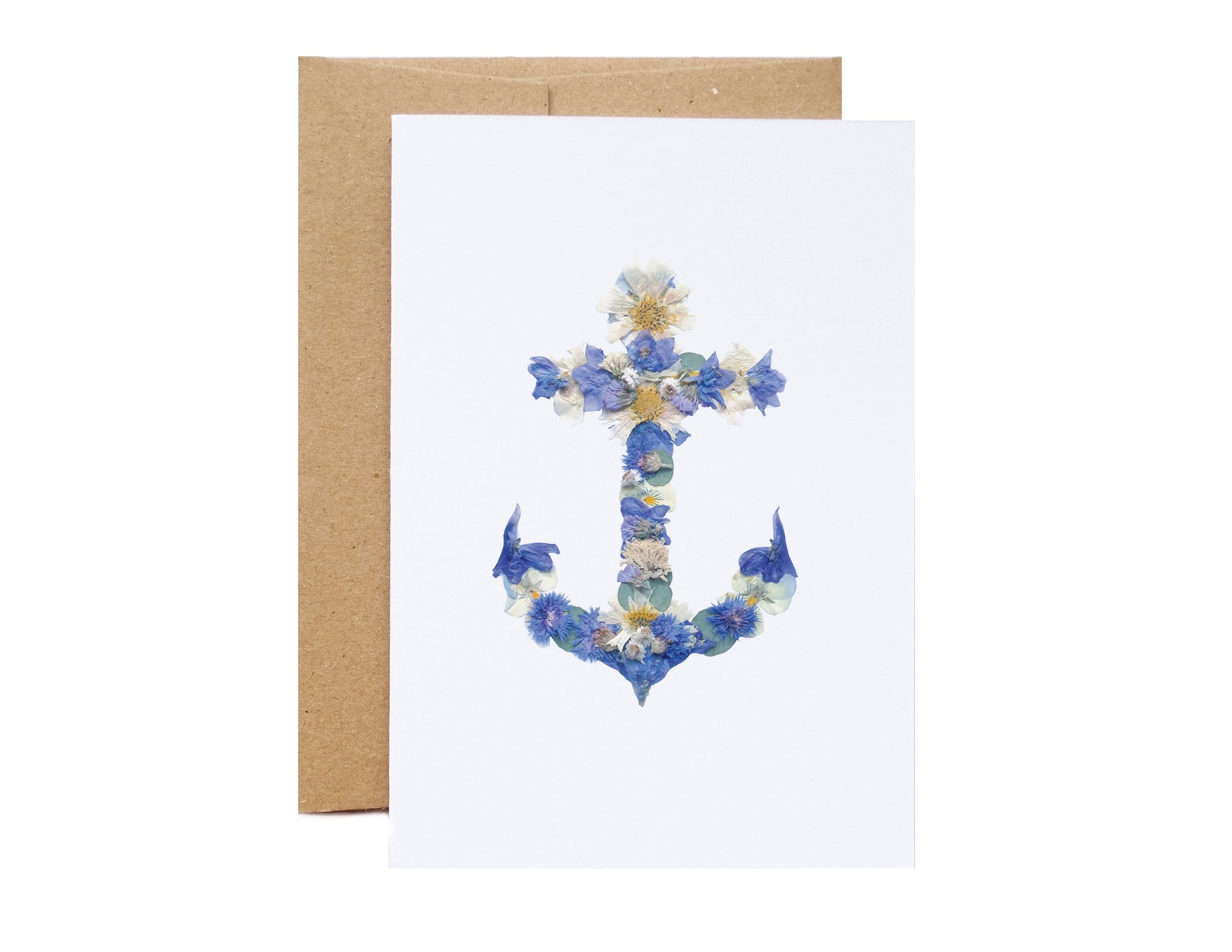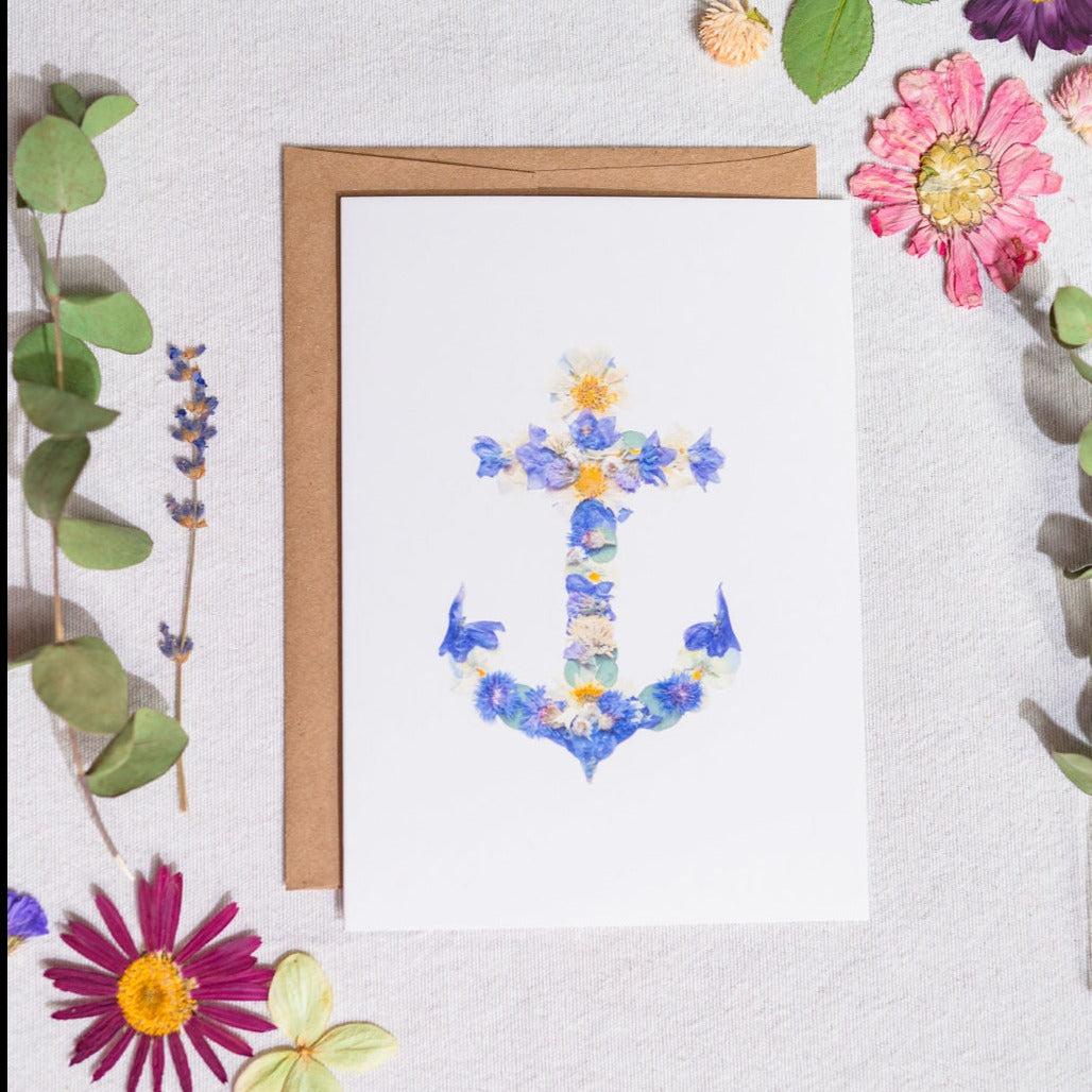 Nautical Blue Flower Anchor, Digitally Printed, Pressed Flower Design