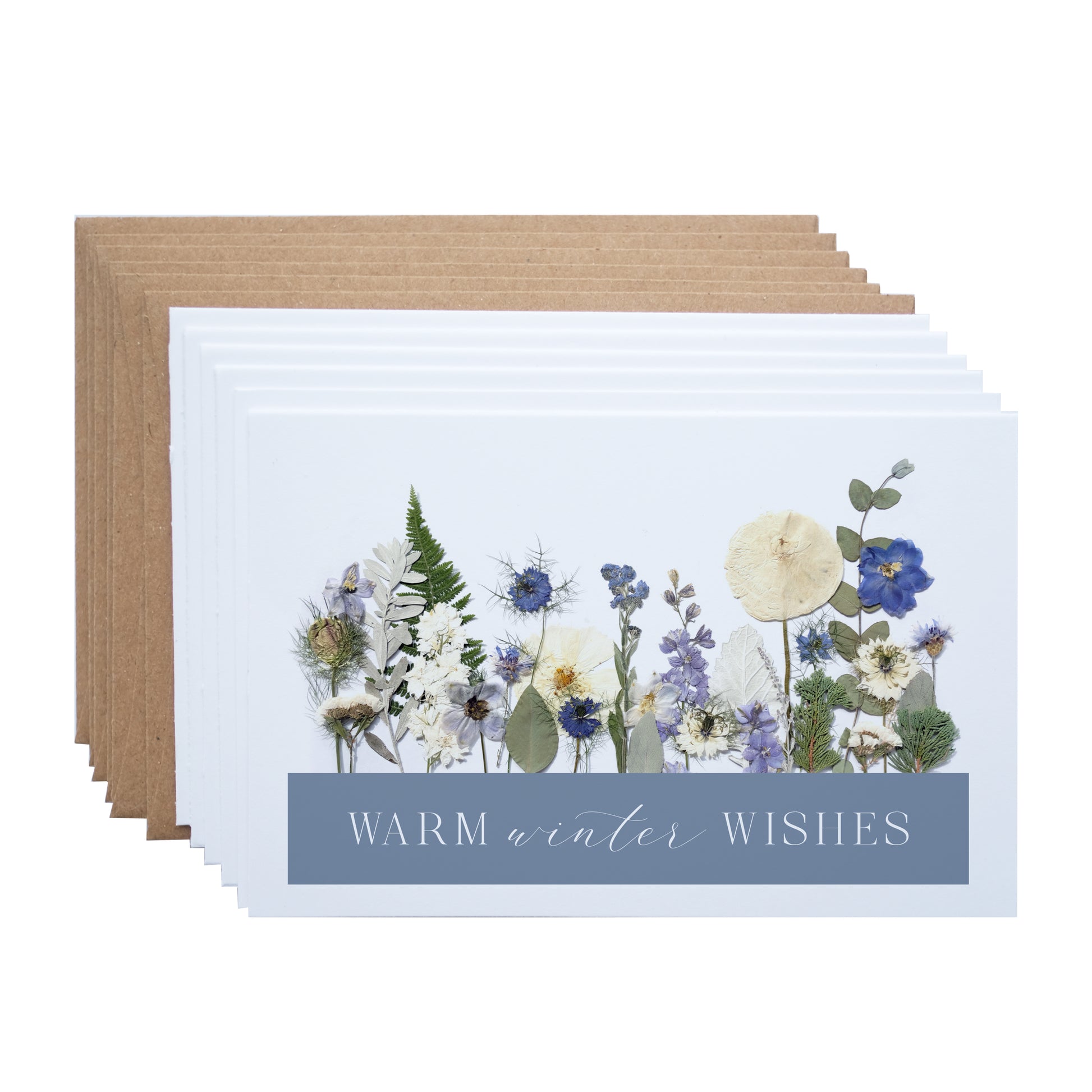 Pressed Flower, Blue Warm Winter Wishes, Seasonal Note Card Set