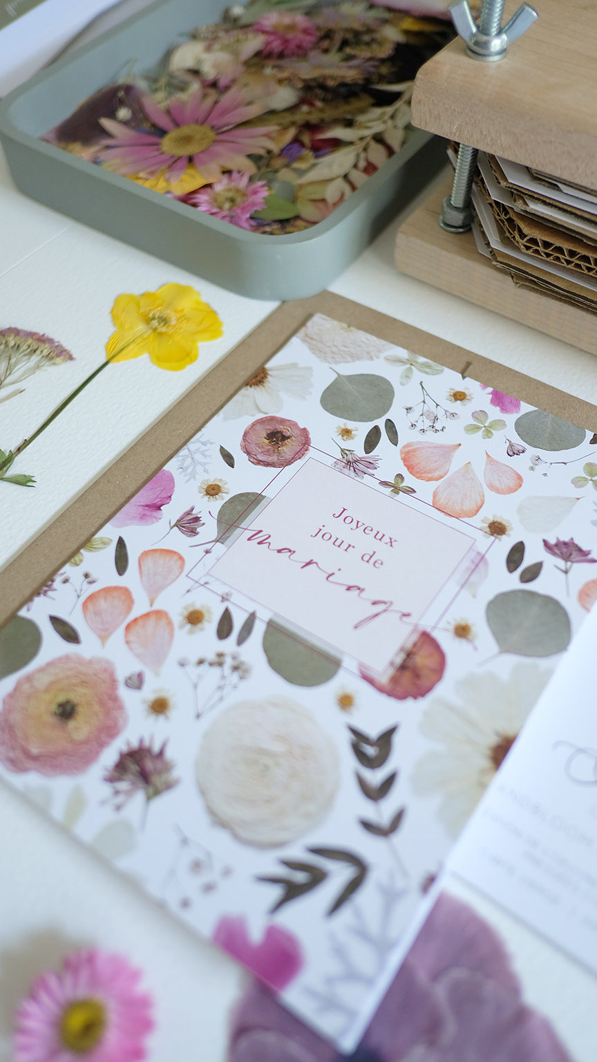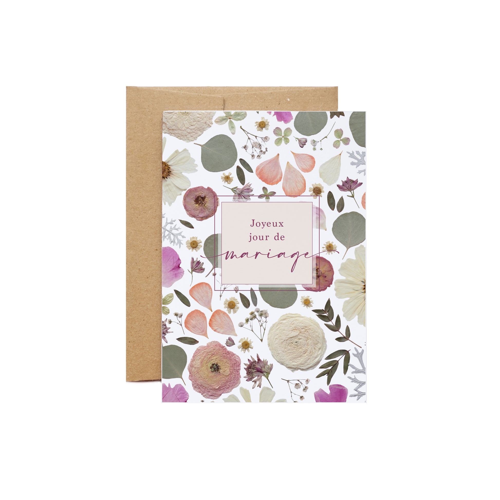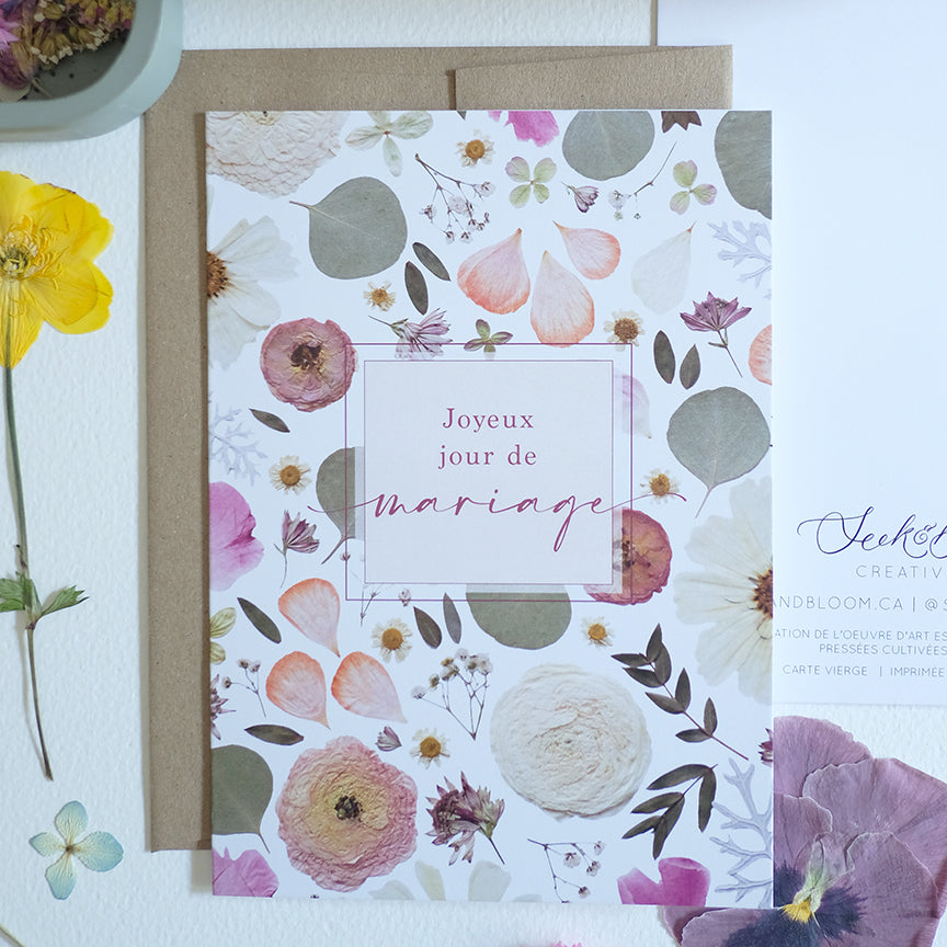 Joyeux Jour de Mariage, Pressed Flower Greeting Card
