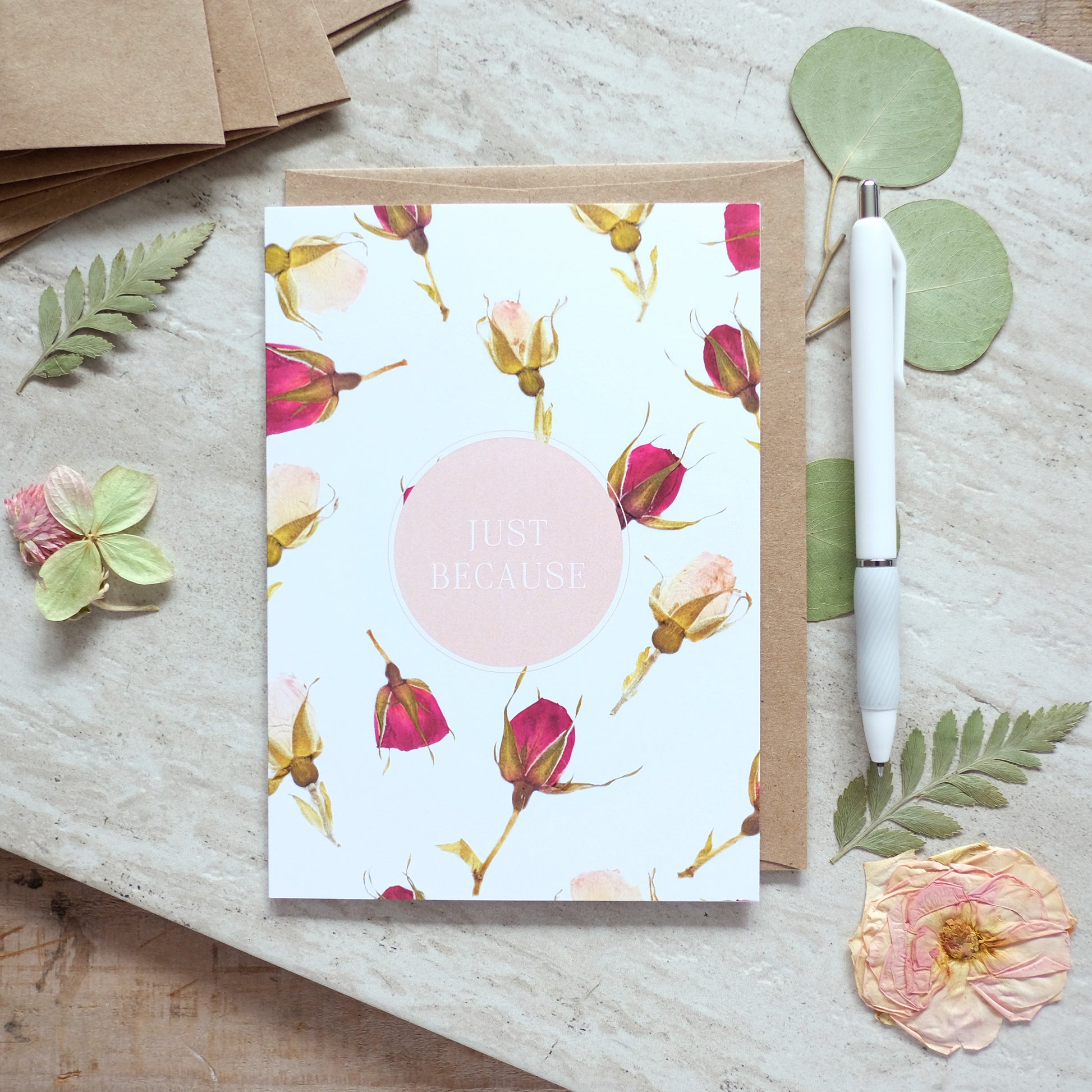 Just Because, Rose Buds, Digitally Printed, Pressed Flower Design