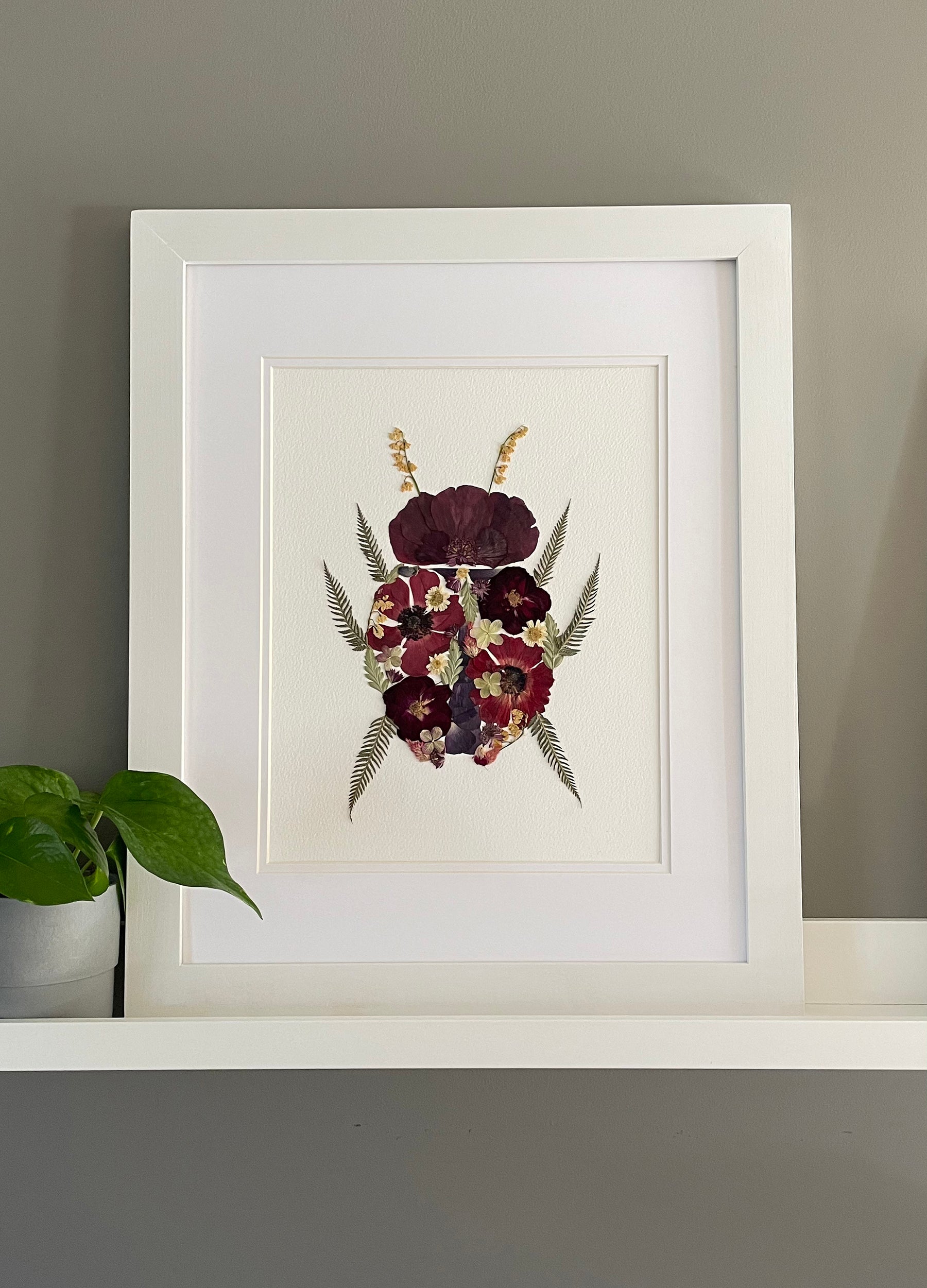 Ladybug, Pressed Flower Original Artwork- 10x13" Framed