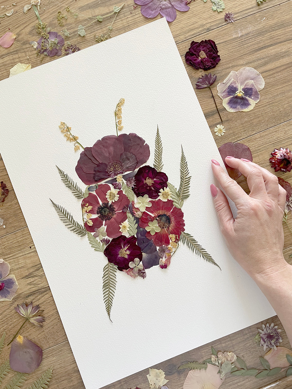 Flowers have been locally grown with lots of love and preserved to hold their colour as long as possible. Please remember that the flowers will develop more character over time and eventually fade. To hold the colour of your artwork longer, keep your artwork out of direct sunlight and prevent any moisture from getting to them within the frame. Sunny living spaces and bathrooms may change the way your flowers age over time.