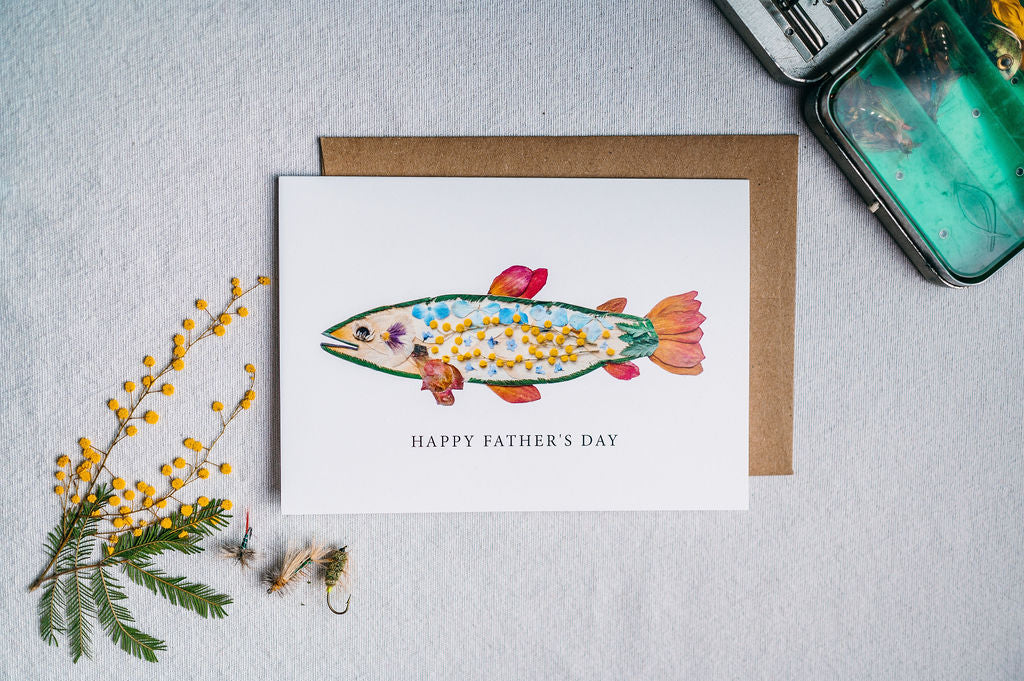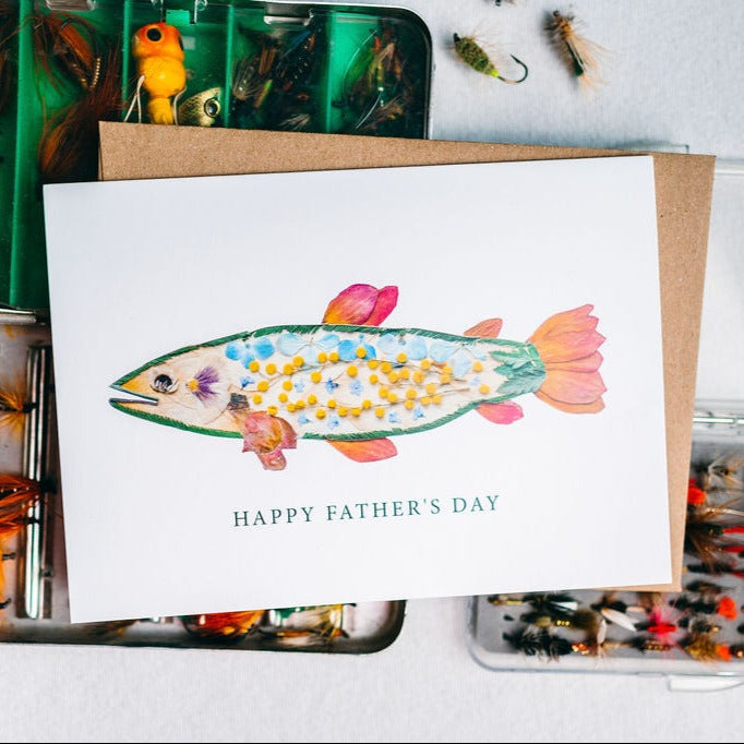 Father's Day Fish, Pressed Flower Trout, Happy Father's Day Card
