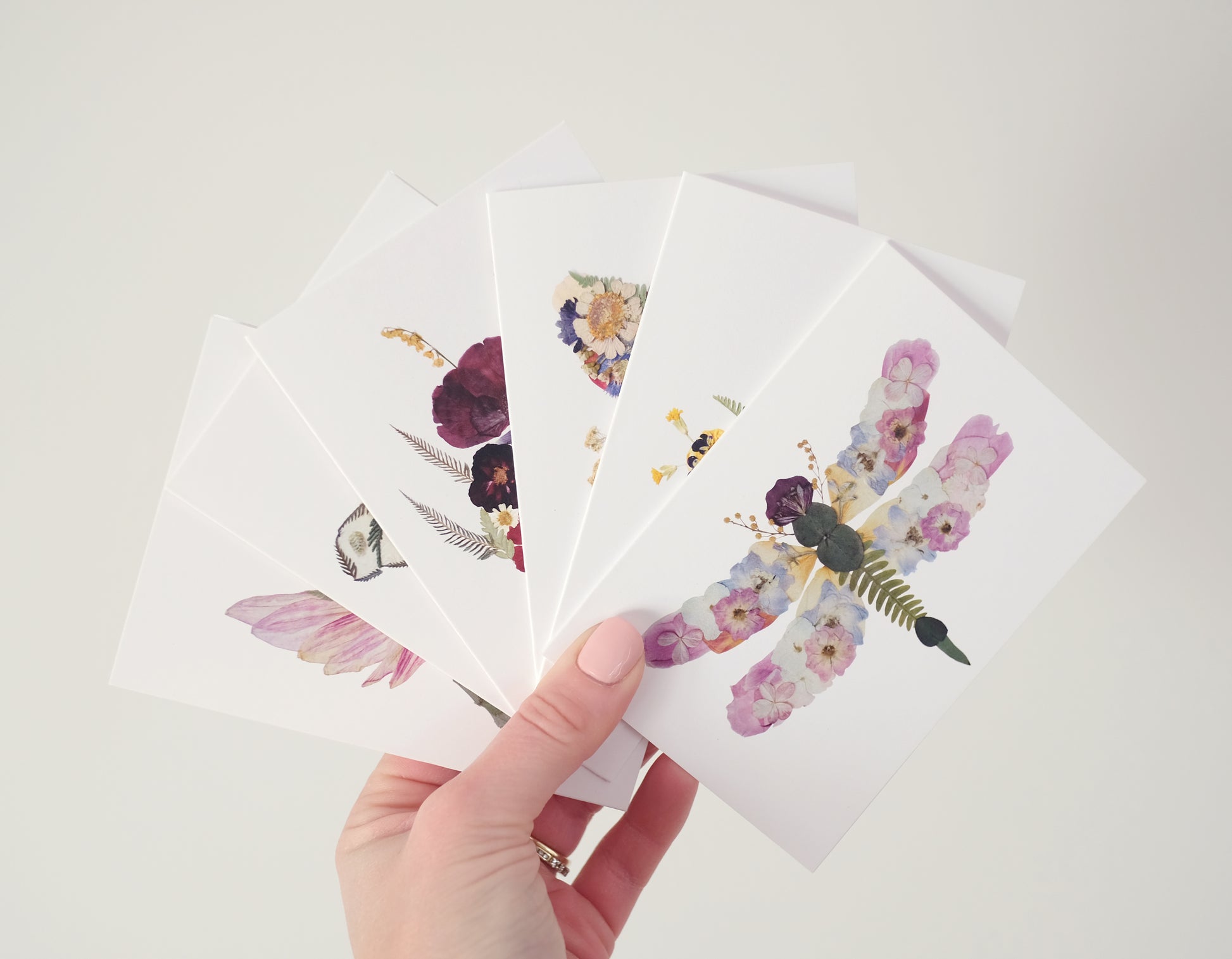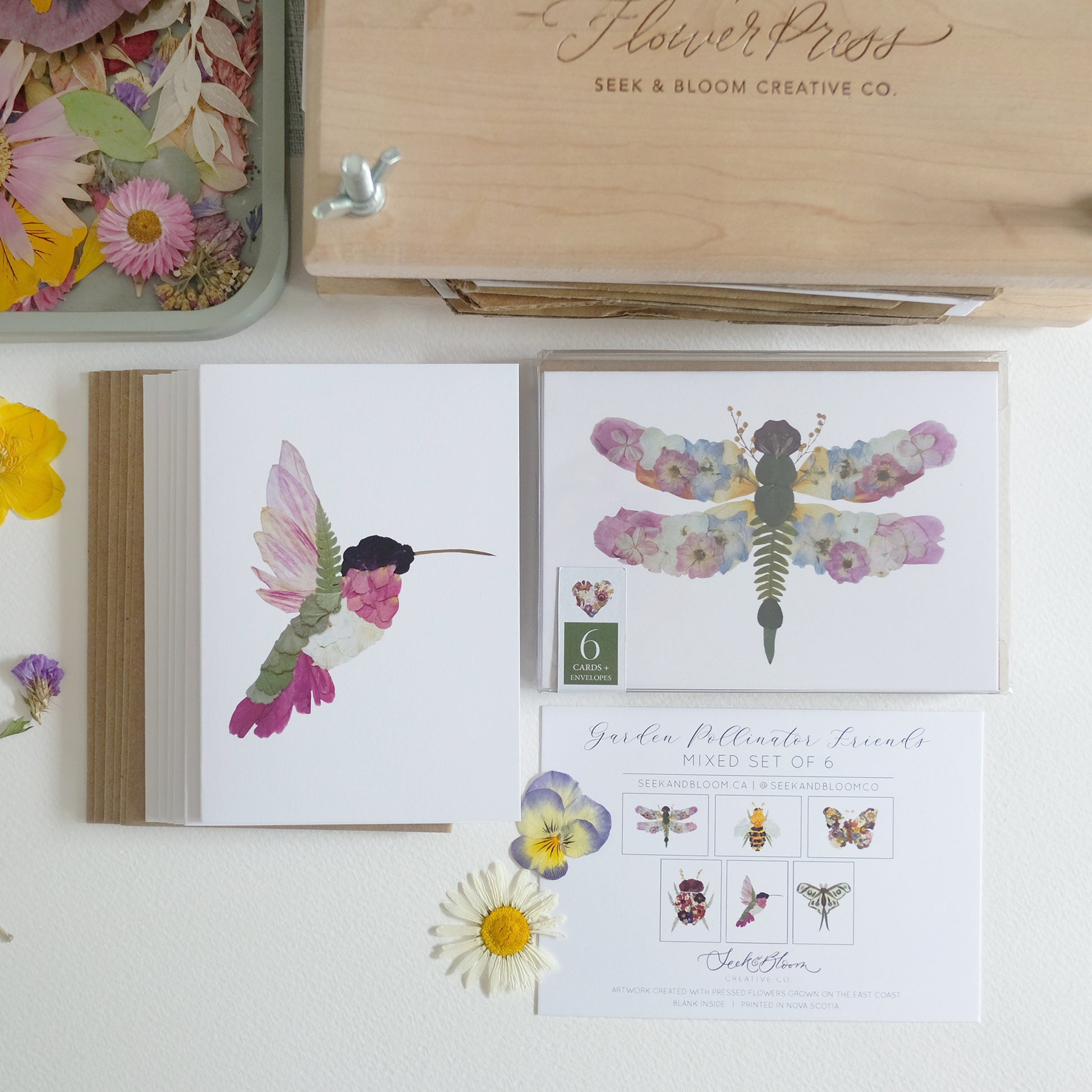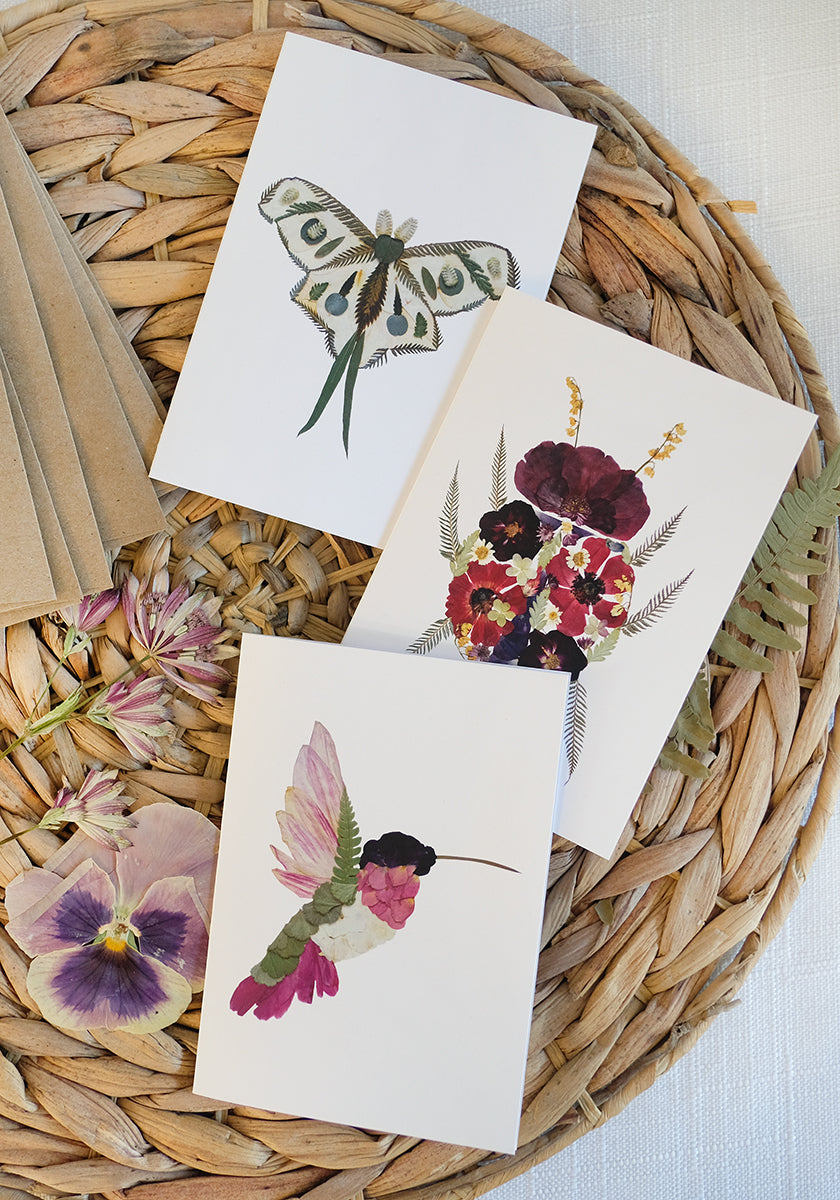 Mixed Pack, Garden Pollinator Friends, Pressed Flower, Note Card Set