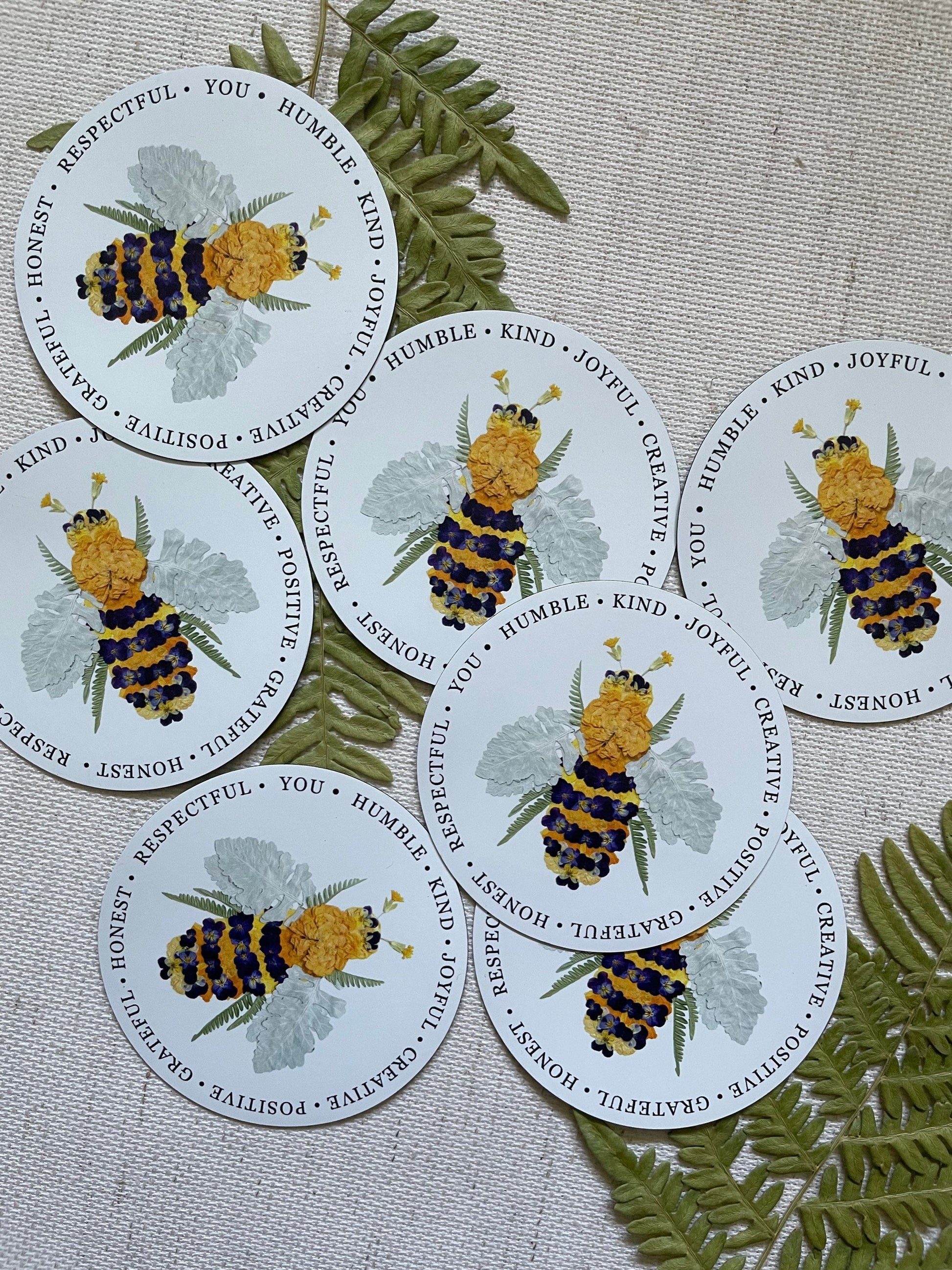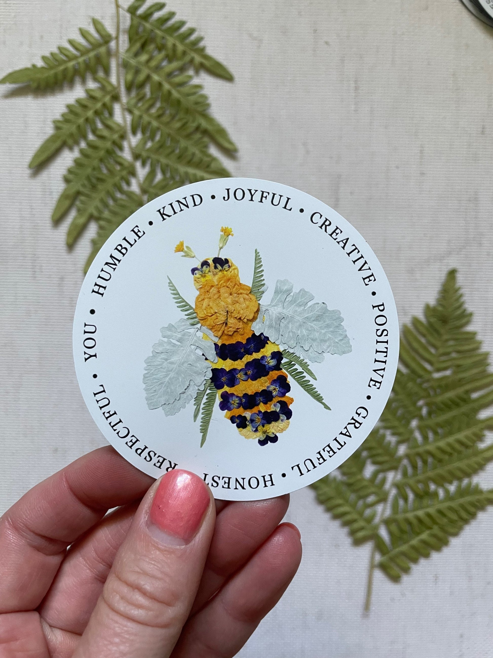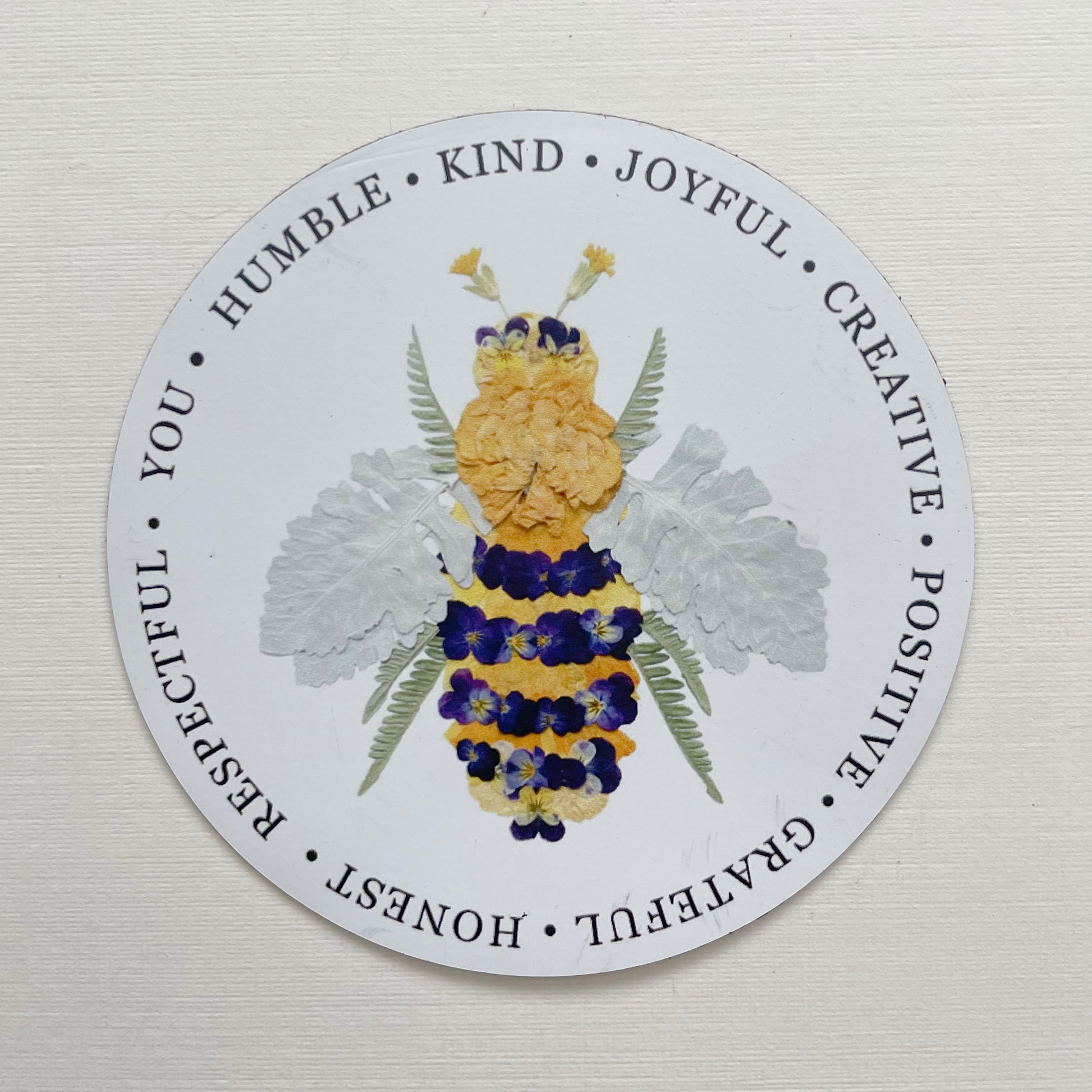 Pressed Flower bee with words