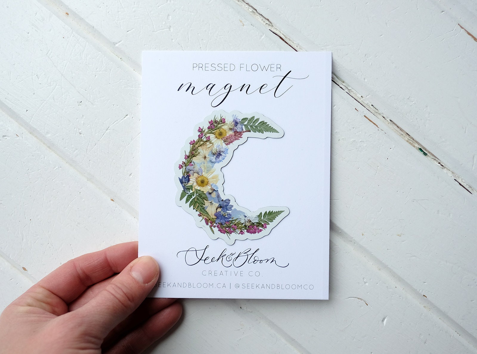 Pressed Flower Crescent Moon Magnet