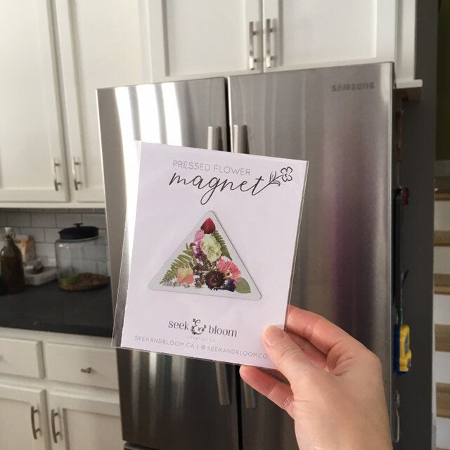 Pressed Flower Triangle Magnet (past, present, future)