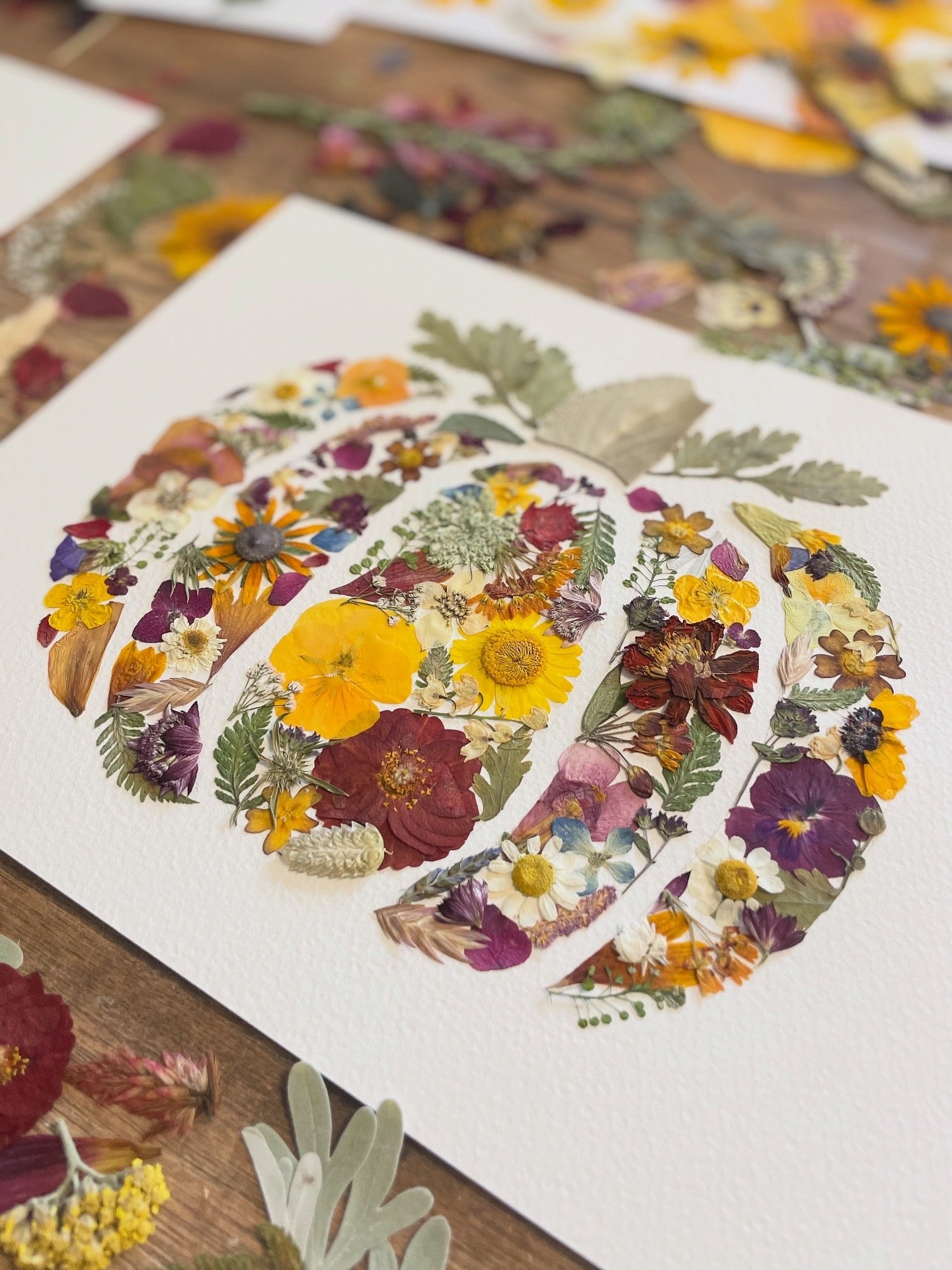 Autumn Pumpkin Art made with colourful and seasonal pressed flowers
