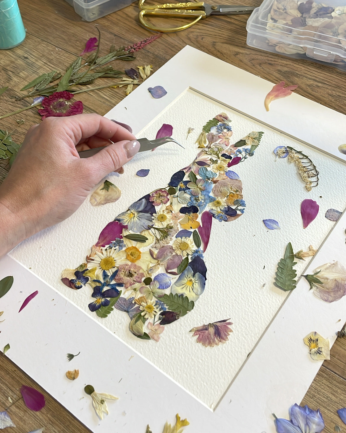 Rabbits symbolize renewal, abundance, and the playful energy of spring. This floral bunny collage blends soft petals and organic textures to capture its whimsical charm, perfect for celebrating nature and the changing seasons.