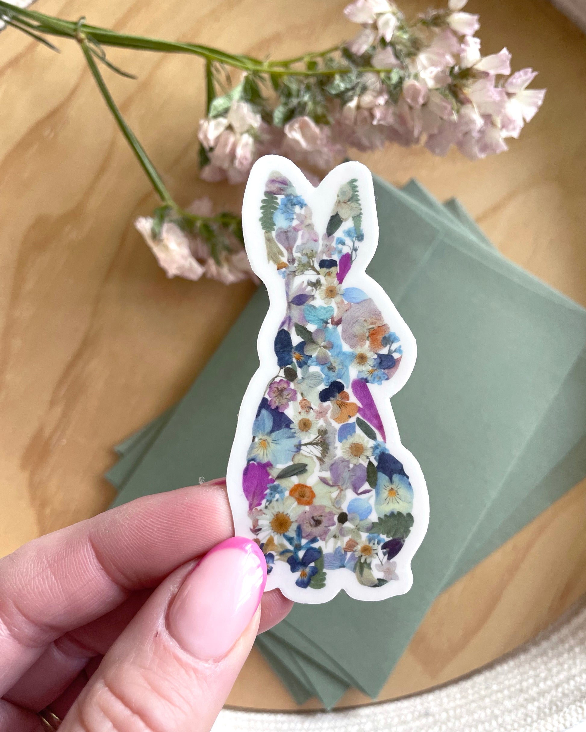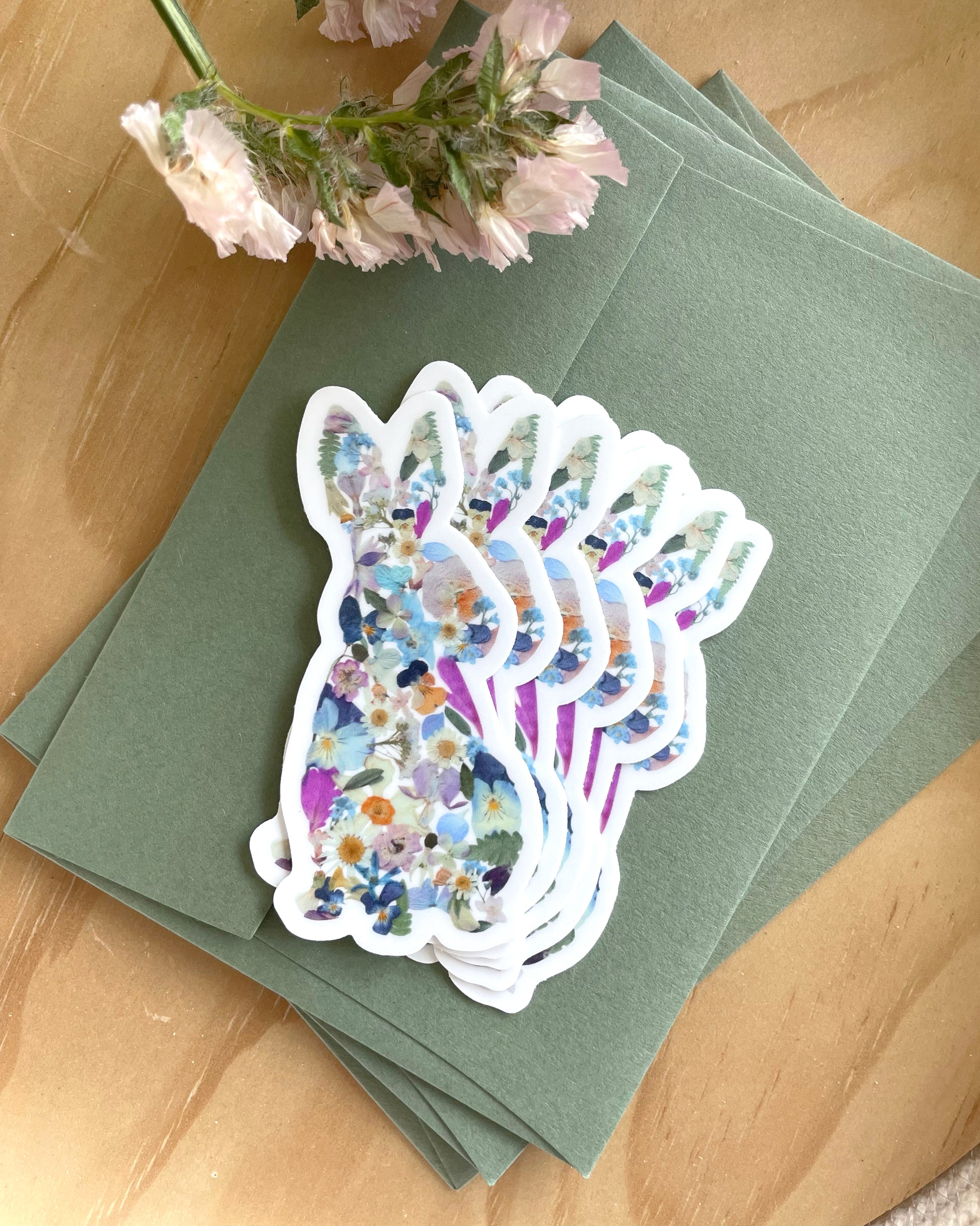 Pressed Flower Rabbit Art Sticker