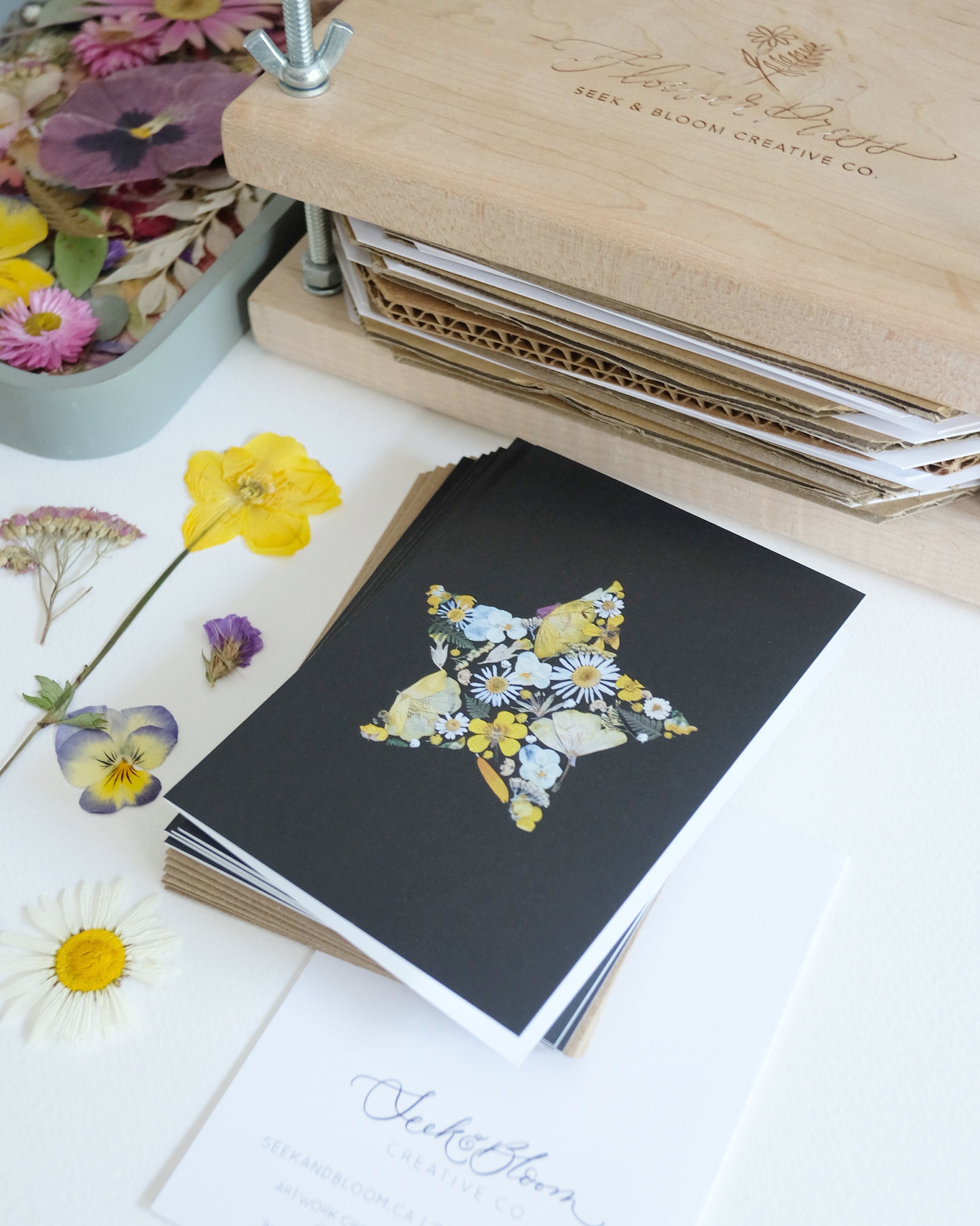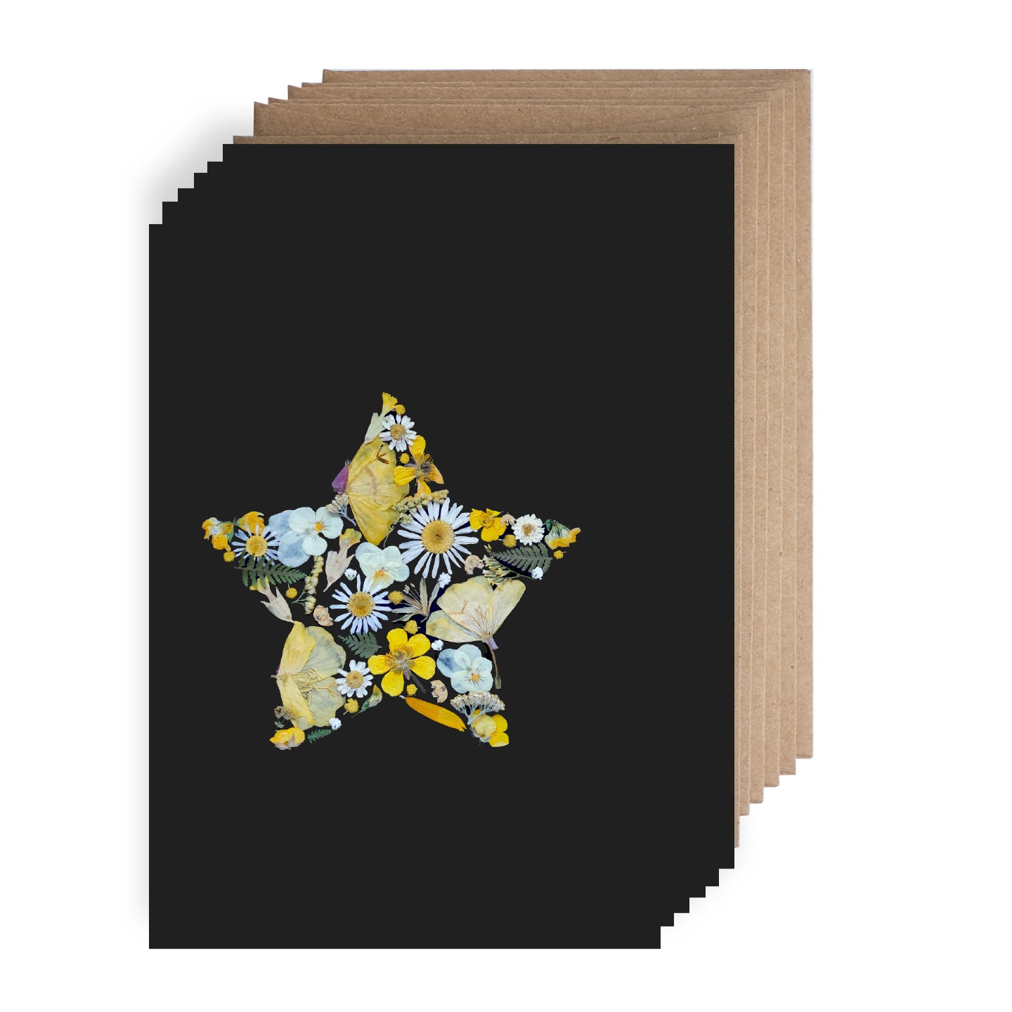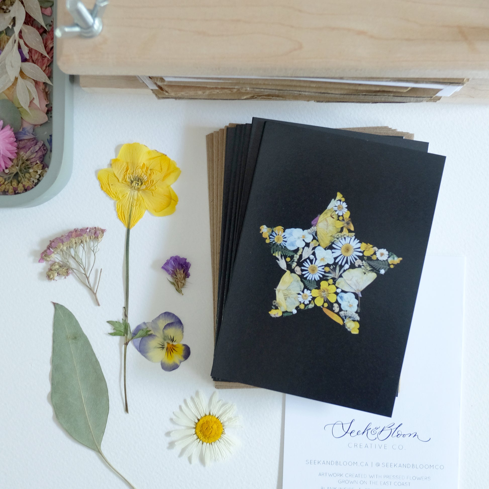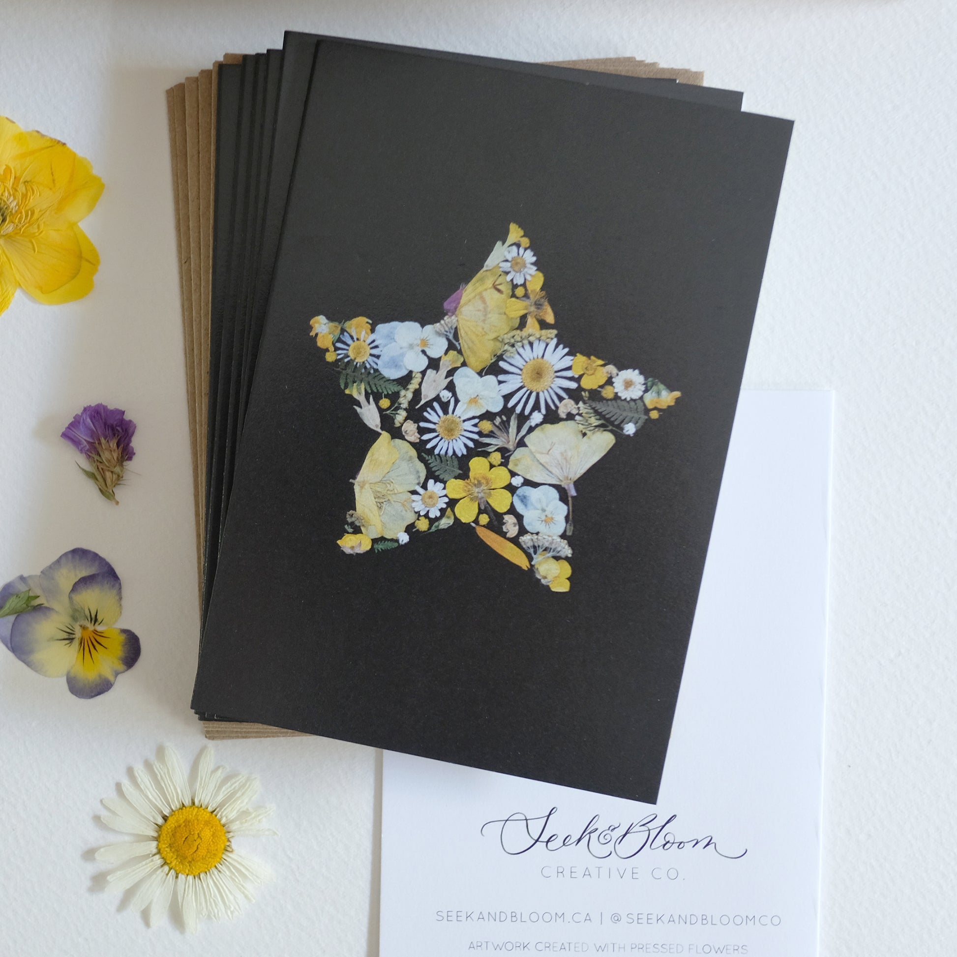 Star, Pressed Flower on Black, Note Card Set *Discontinued