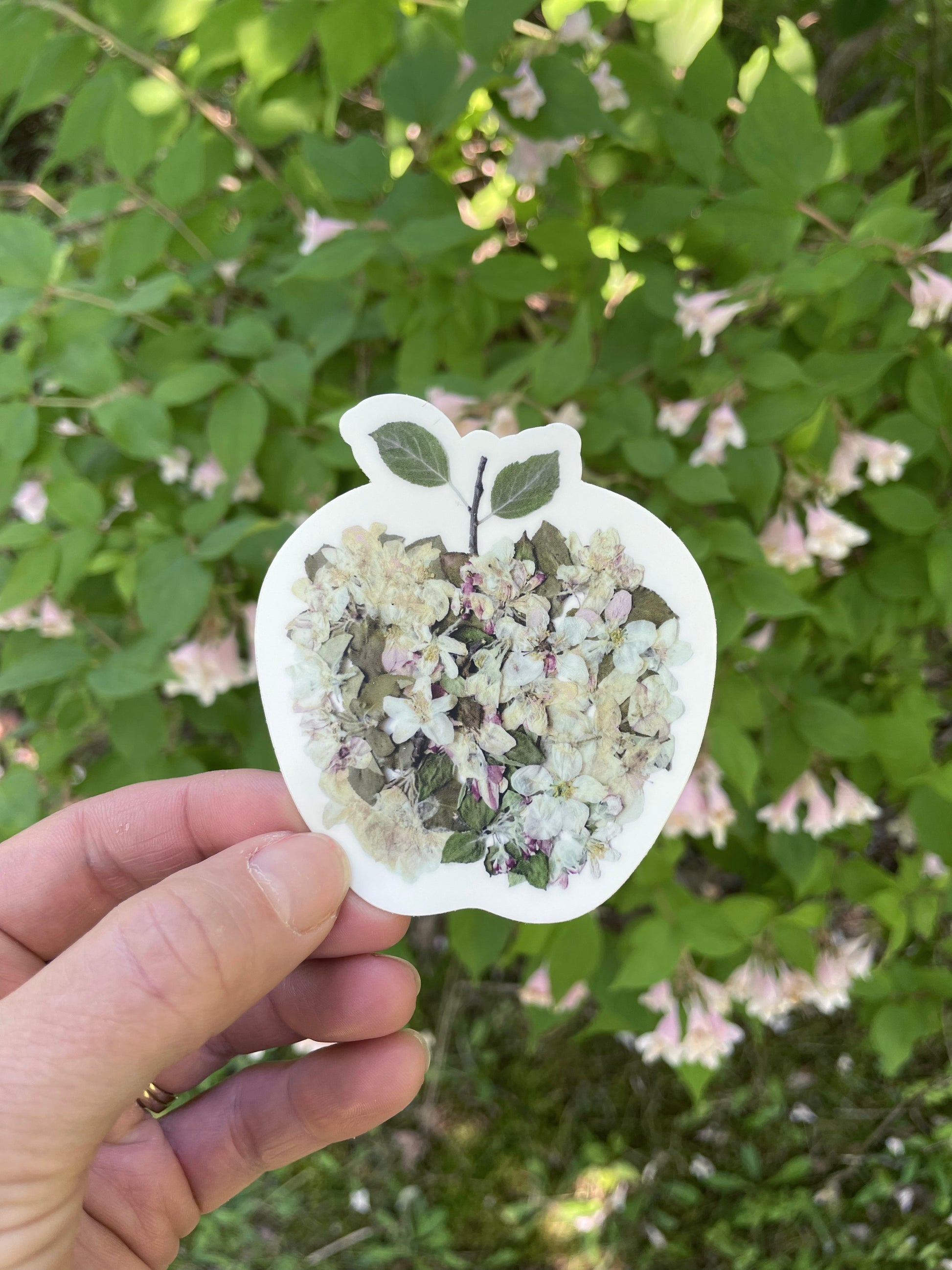 Apple Pressed Apple Blossoms Flowers, Sticker 3"