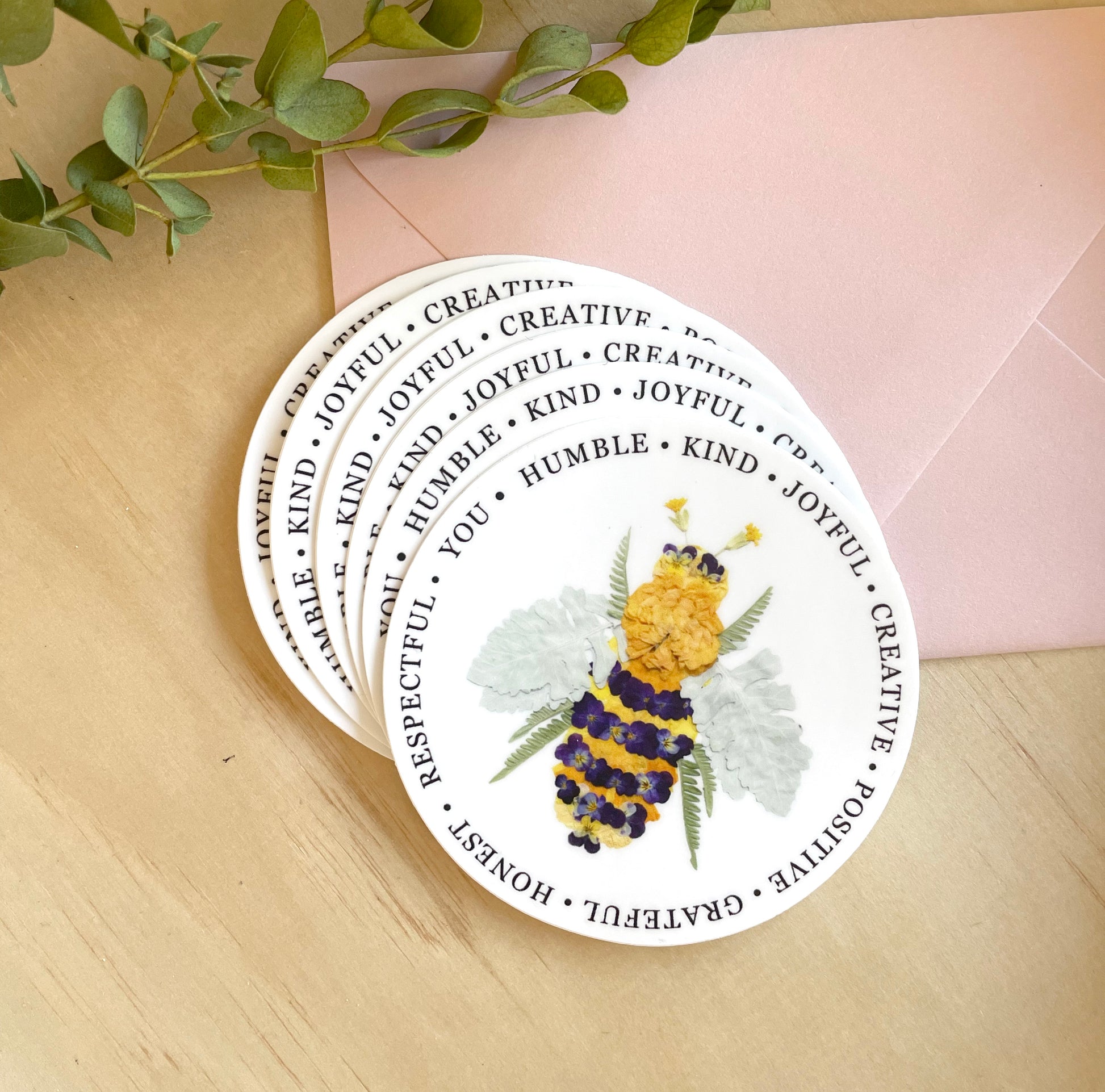 Pressed Flower BEE with encouraging words.