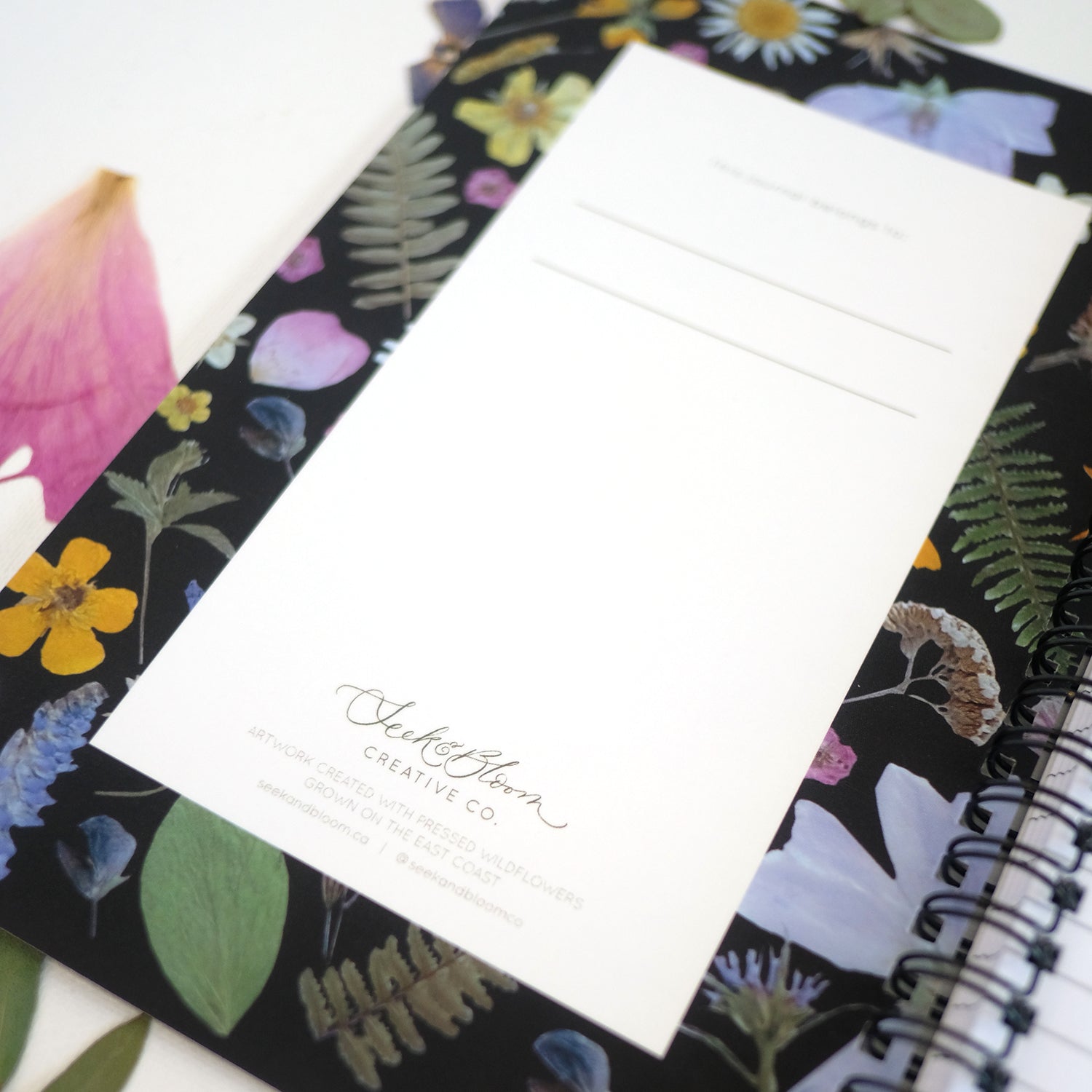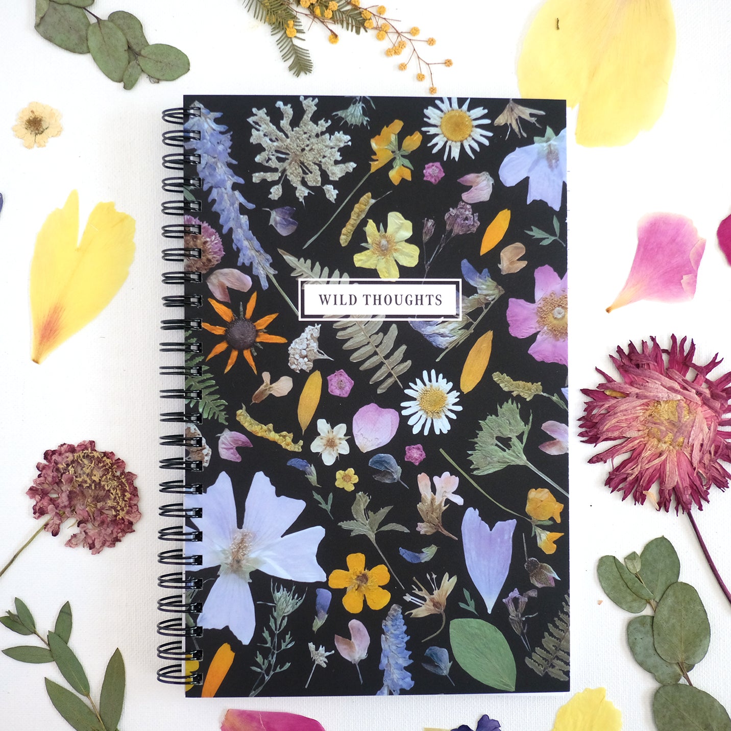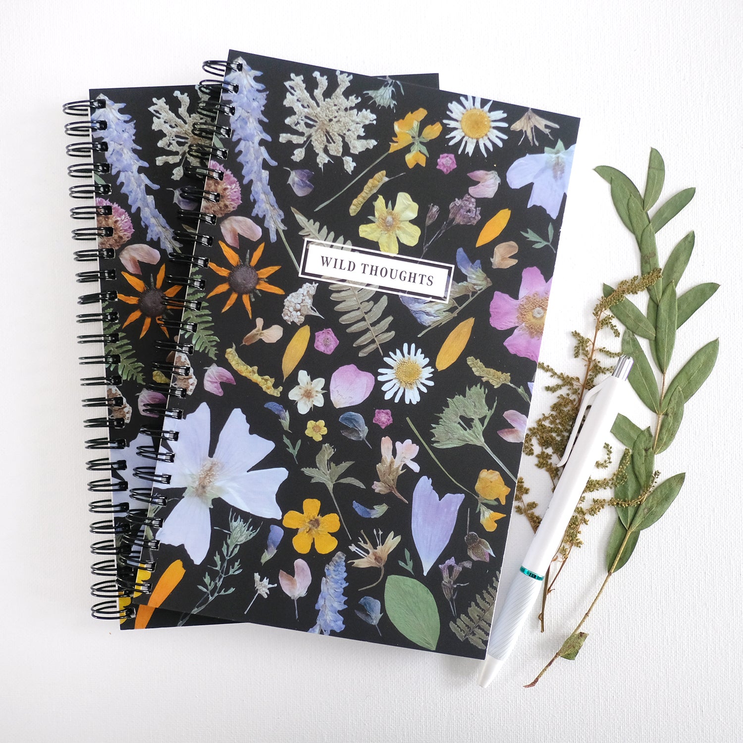Explore your most "Wild Thoughts," a creative notebook adorned with wildflowers foraged from the East Coast. Each page is a canvas for your thoughts to bloom with the changing seasons. Write your innermost musings and dreams, and let your creativity flow in nature's beauty.